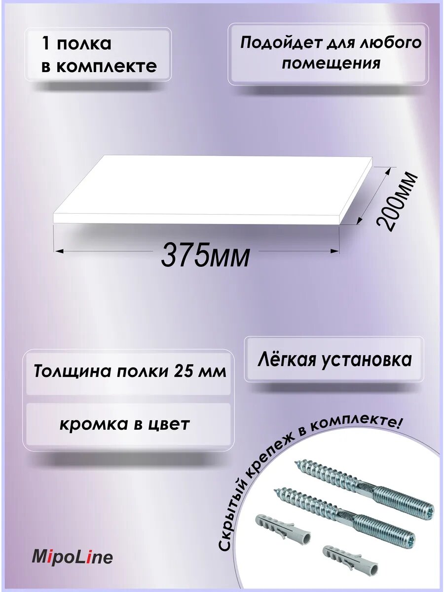 Полка настенная парящая 375х200х25 (1 шт) белая