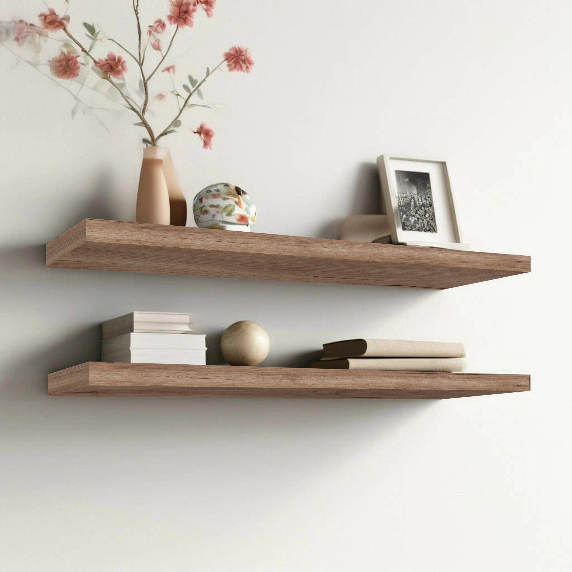 Полка настенная парящая 274х123 (2 шт) дуб шерман коньяк