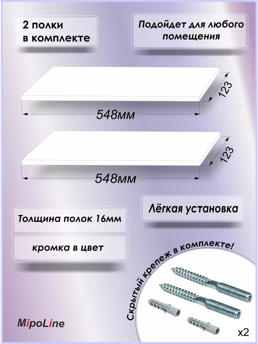 Полка настенная парящая 548х123 (2 шт) белая