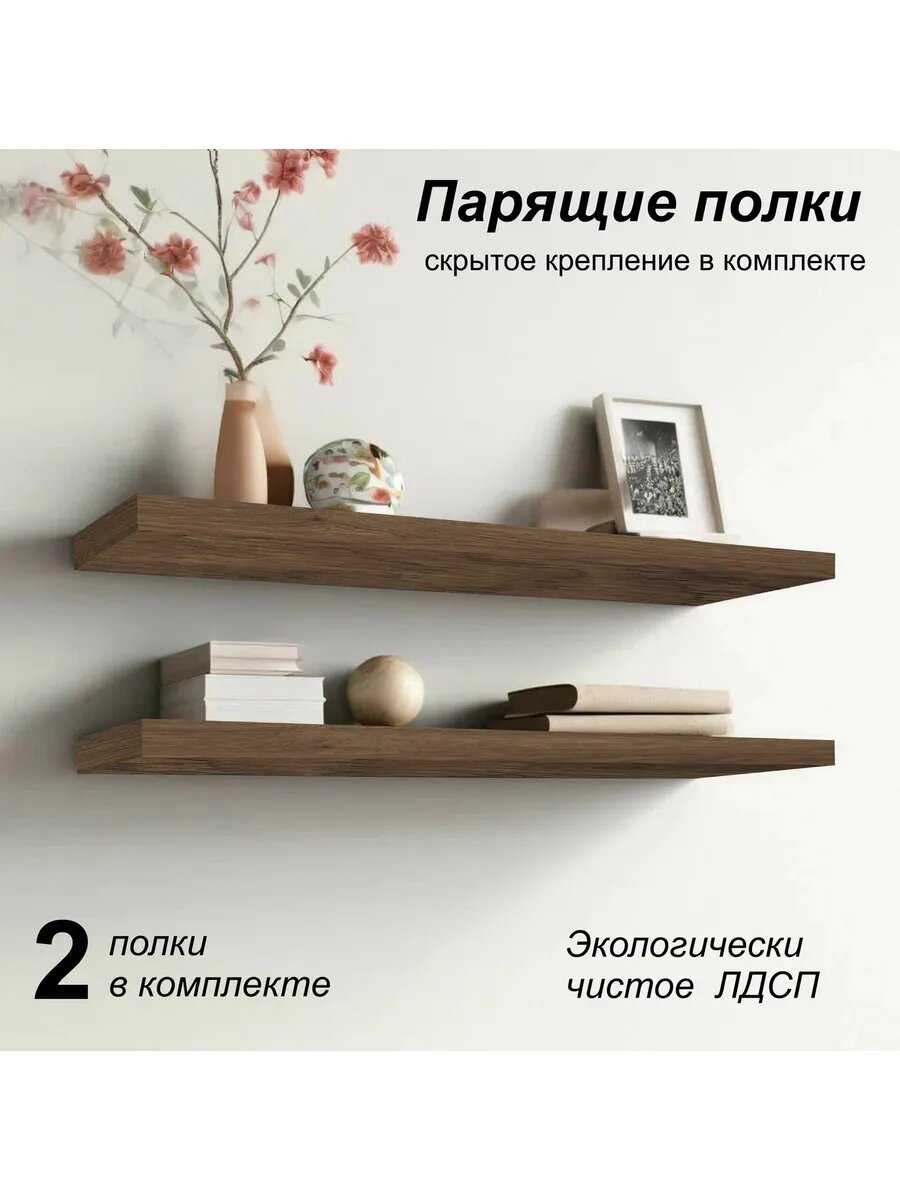 Полка настенная парящая 548х123 (2 шт) дуб шерман коньяк