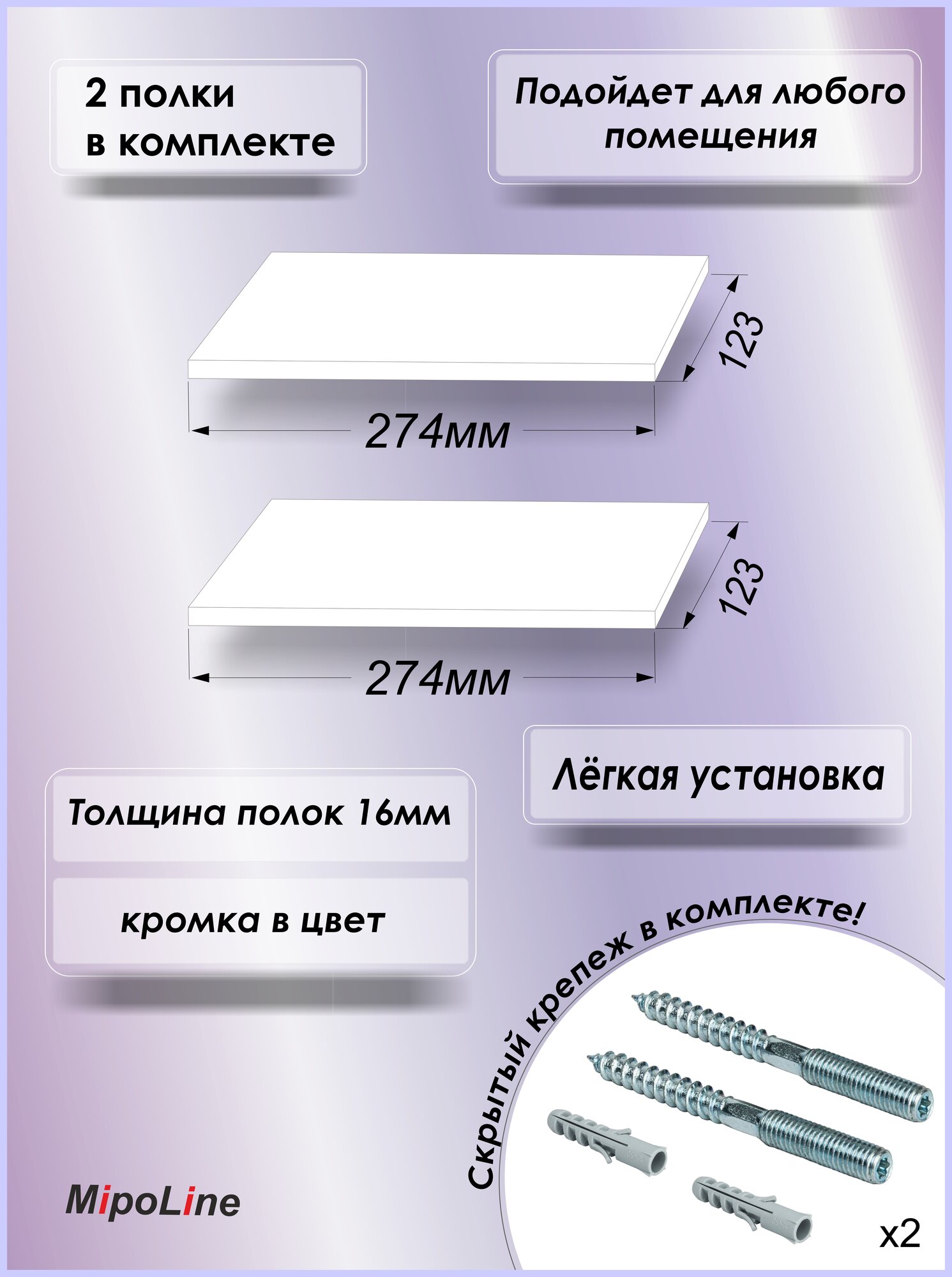 Парящие полки 274х123 (2 шт) дуб крафт белый