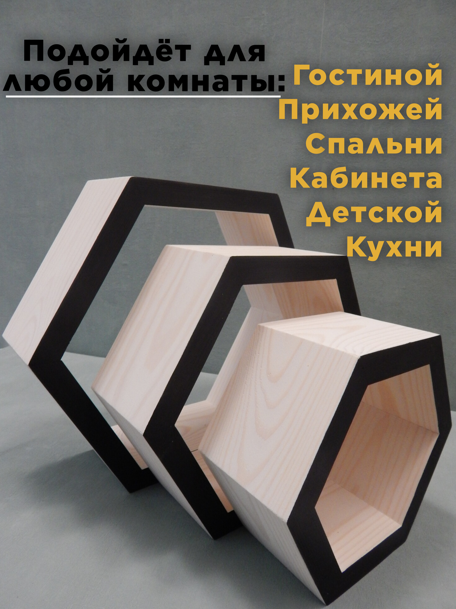 Комплект полок соты, белое масло с чёрным кантом, 3 шт. интересное:
