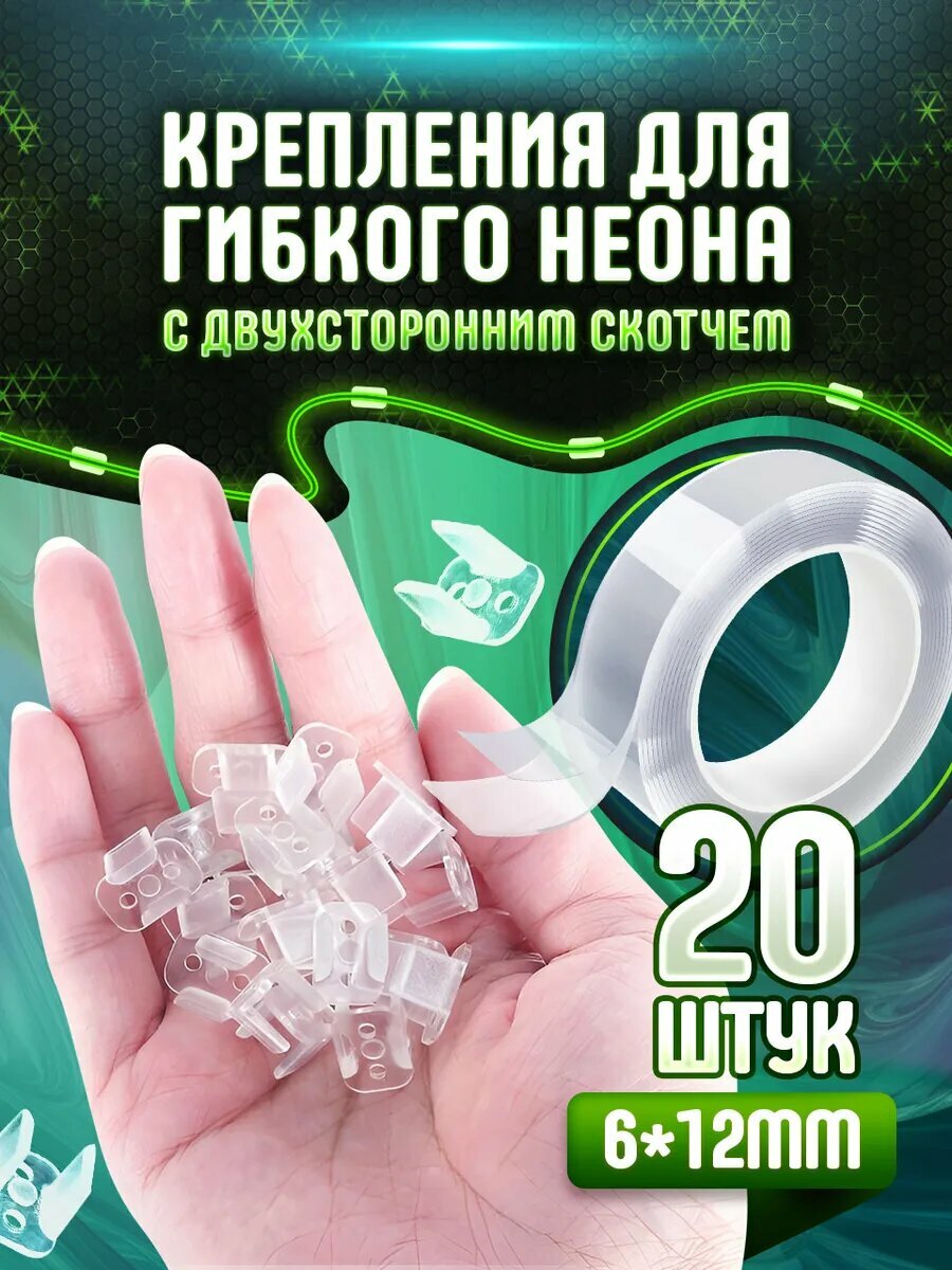 Крепление для гибкого неона и скотч, крепление для неоновой ленты, размер 6*12, 20 штук. интересное: