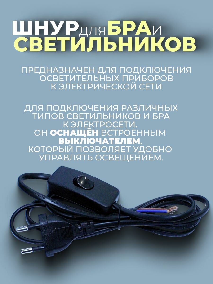 Сетевой шнур с выключателем для бра и светильников 1,5м, 250 В 2 А черный интересное: