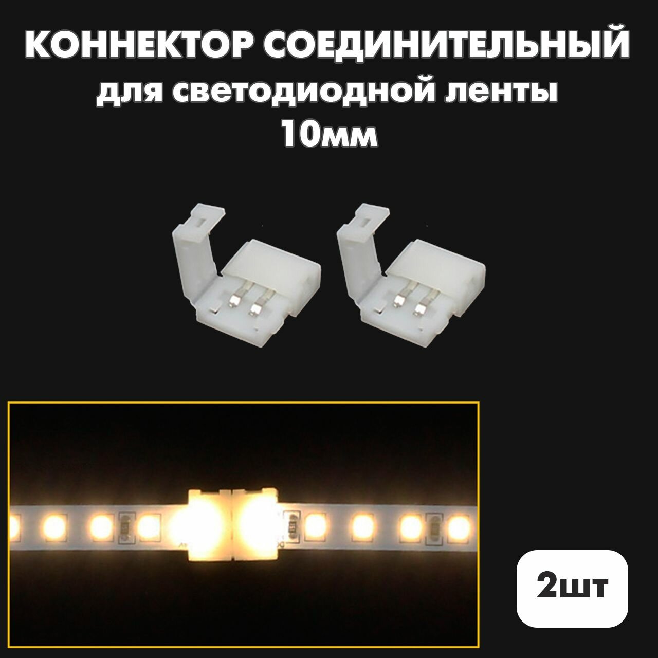 Коннектор 10мм 2шт для соединения одноцветной двухконтактной (2pin) светодиодной ленты интересное: