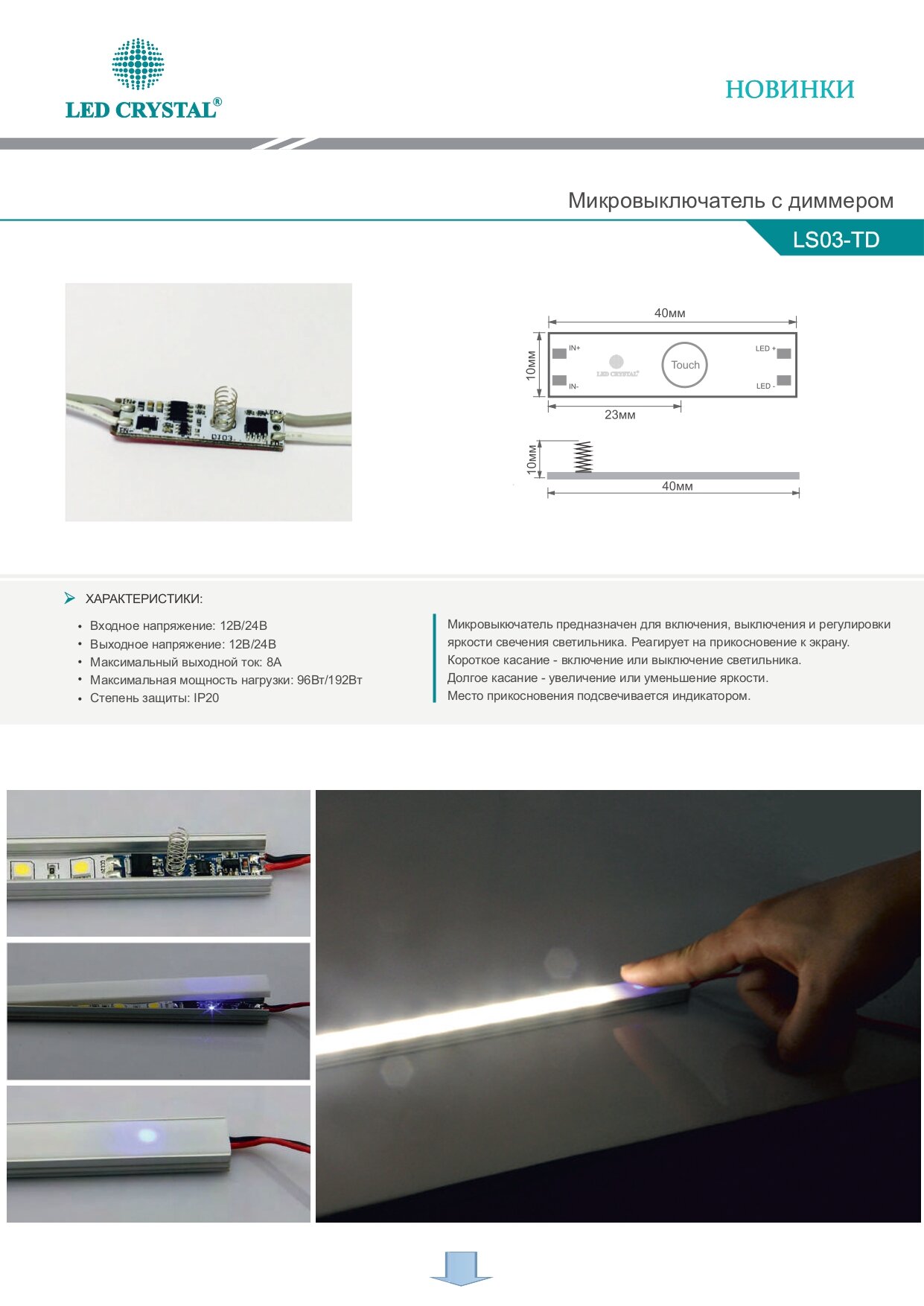 Микровыключатель светодиодных осветительных приборов с диммером 12V/96W, 24V/192W, 8A интересное: