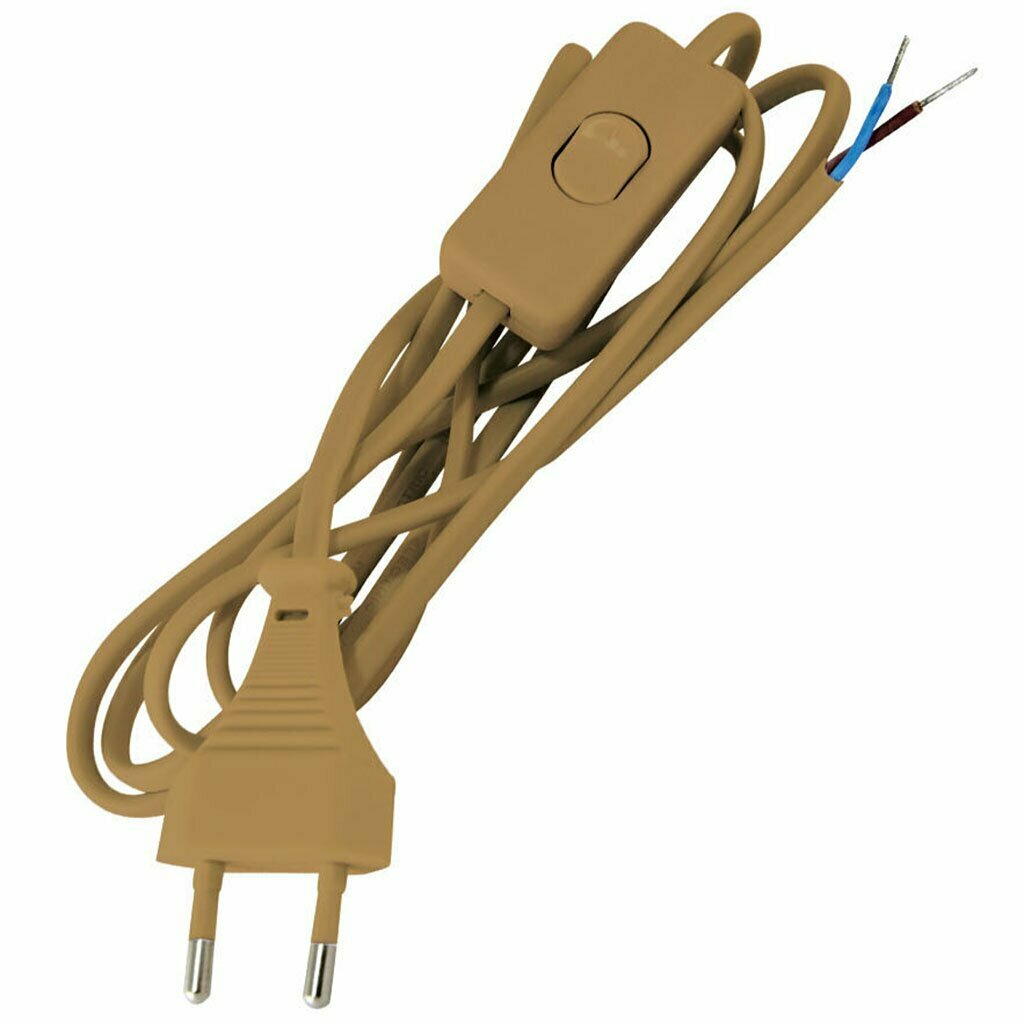 Шнур с выключателем и плоской вилкой ШУ01В ШВВП 2х0,75мм2 2м. коричневый "ЭКО" TDM {SQ1305-0006}