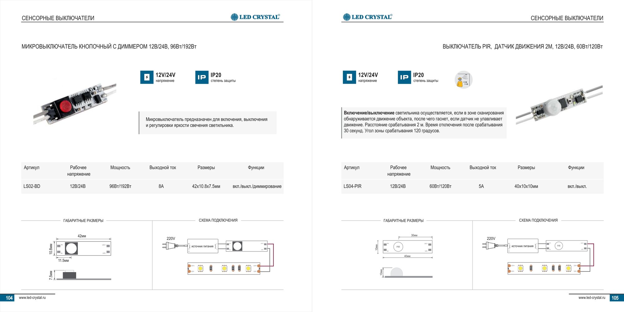 Микровыключатель кнопочный с проводом для профилей 12V, max 96W, max 8A, IP20 интересное: