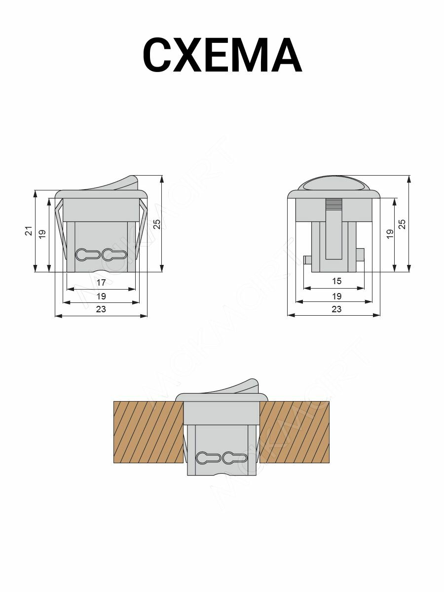 Выключатель кнопочный D23 врезной мебельный белый 2 шт.