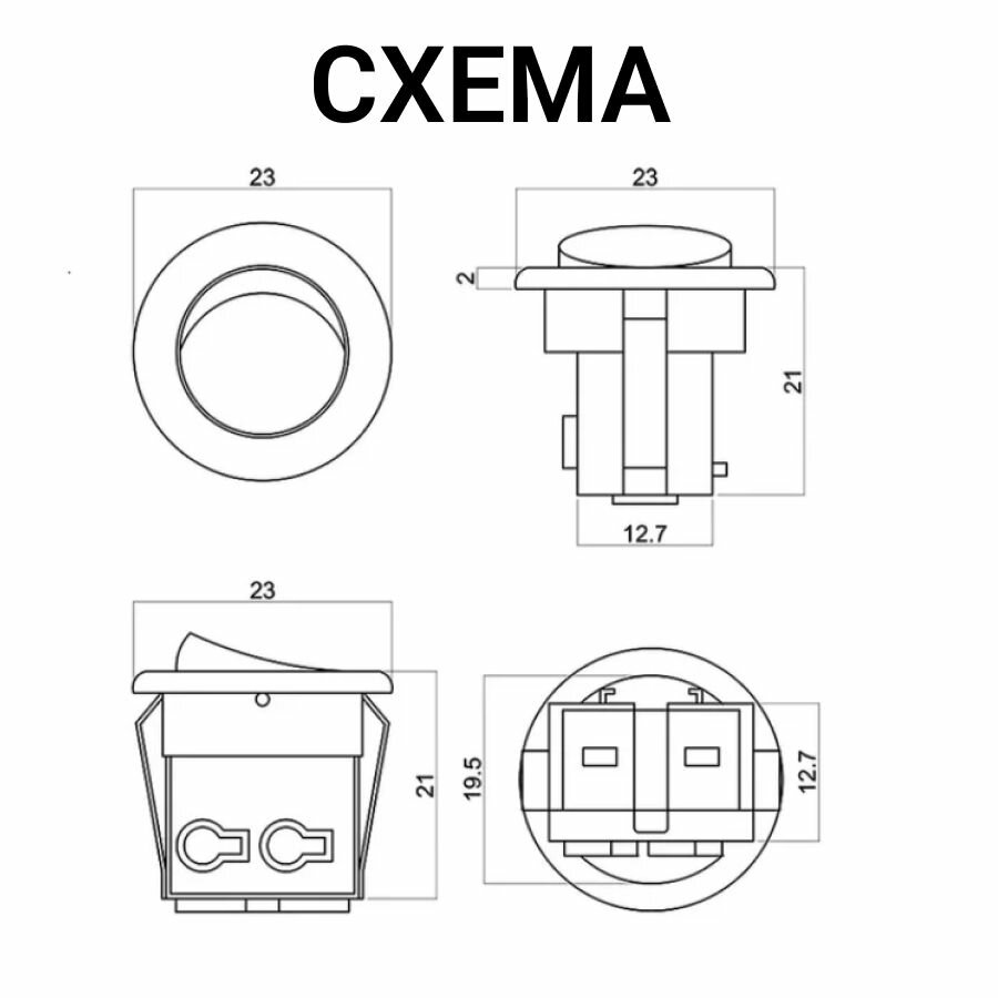 Выключатель кнопочный D23 врезной мебельный белый 2 шт.