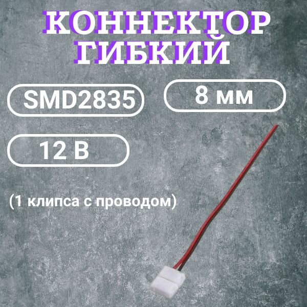 Коннектор гибкий для светодиодной ленты (1 клипса с проводом) 12В, SMD2835, IP20 8мм 2pin интересное: