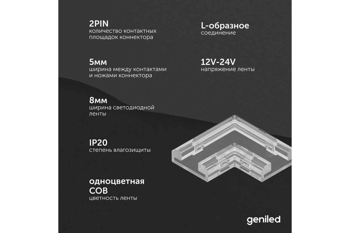 Купить Geniled Коннектор угловой для светодиодной ленты 8мм и ленты COB L-образный прокалывающий 2pin 1 шт 12378