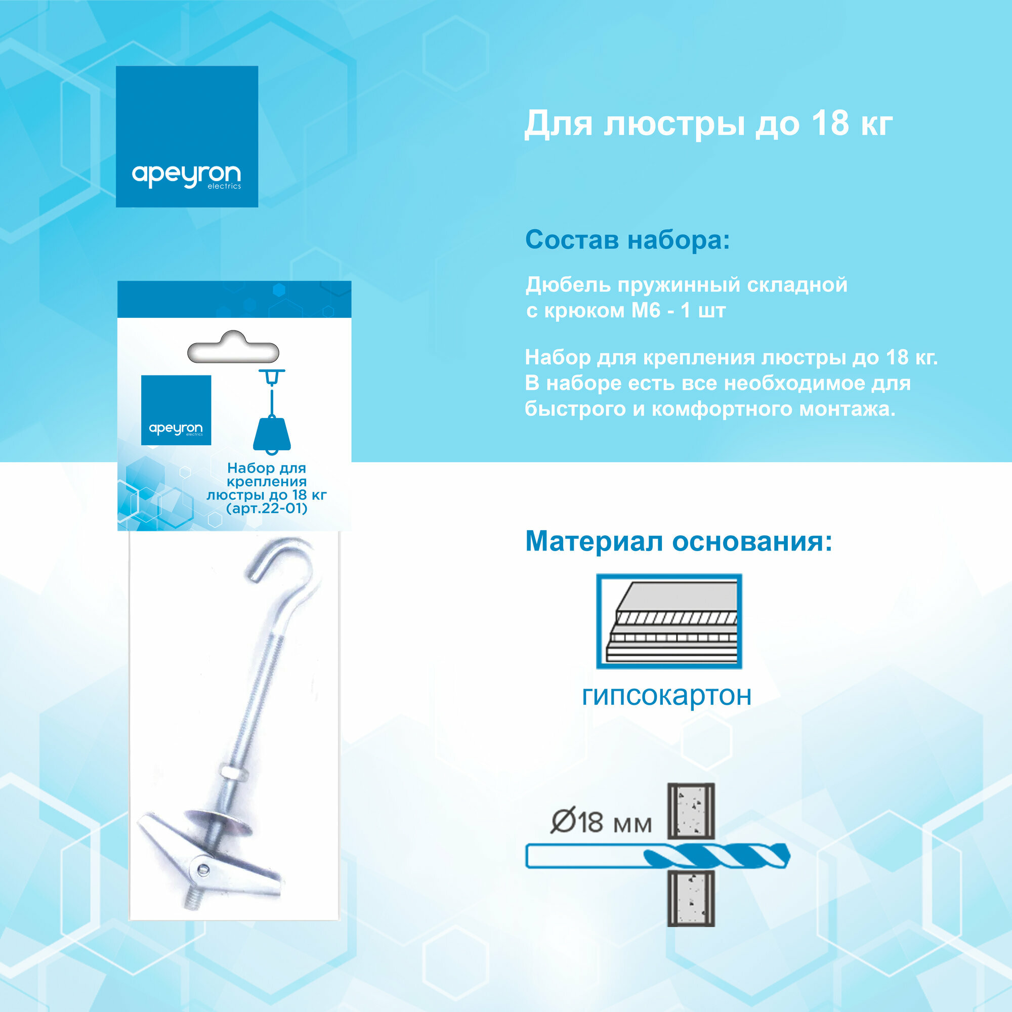 Набор для крепления Apeyron 22-01, для люстры до 18кг, для гипсокартона интересное: