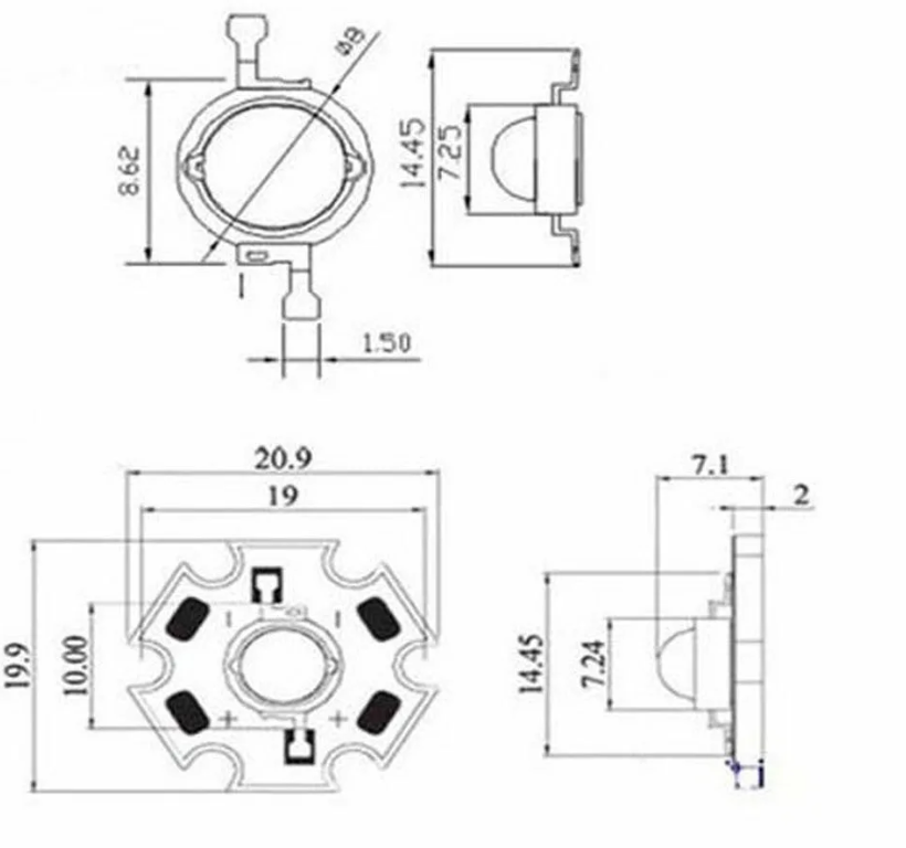 Светодиод мощный COB матрица светодиода 3.0-3.4 В, 3 Вт, 700 мА, 280 лм, RA 80, 8 мм, 20 штук (холодный свет 6000К)