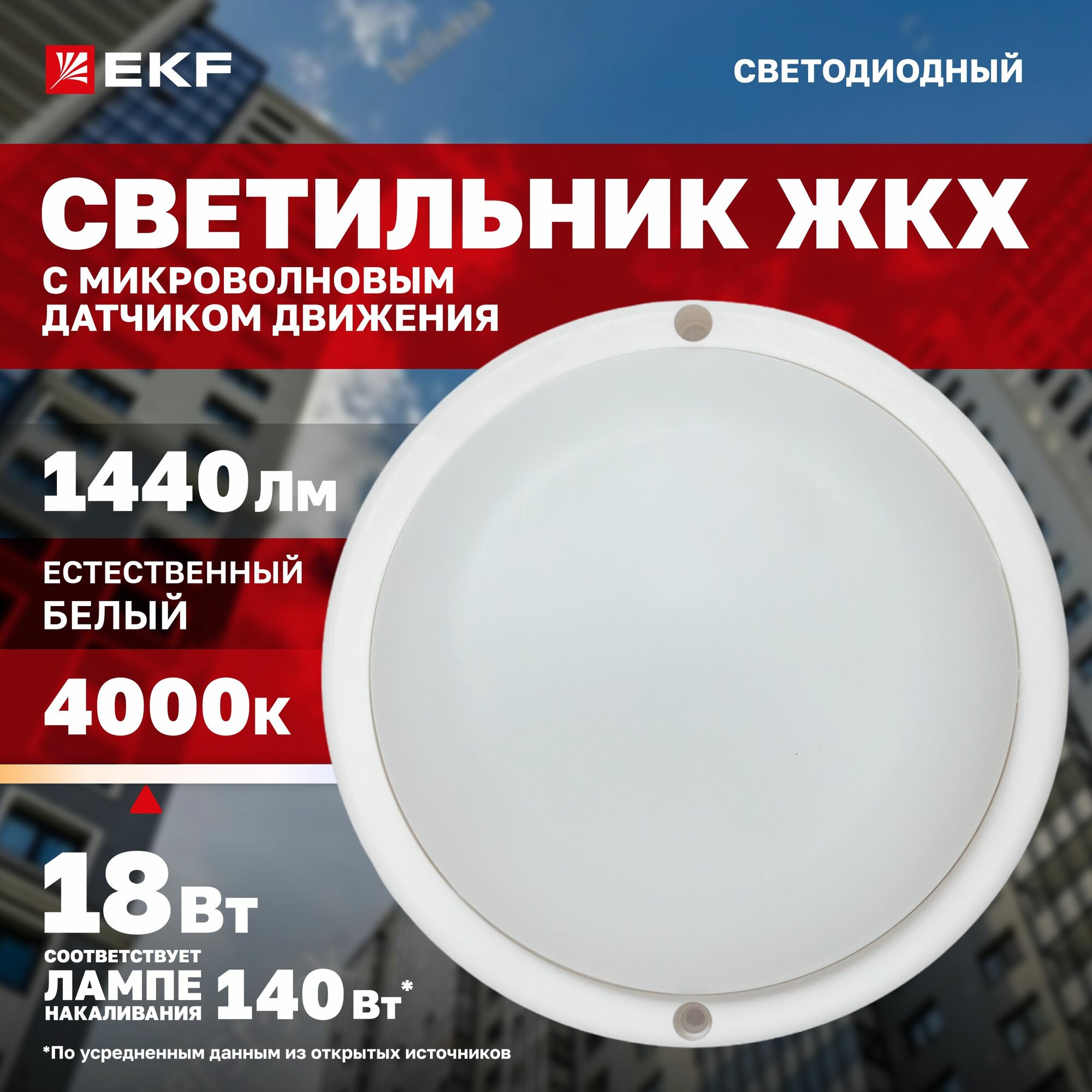 Светильник светодиодный ЖКХ EKF LUMA ДПО-1400 с микроволновым датчиком движения 18Вт 4000K IP65 интересное: