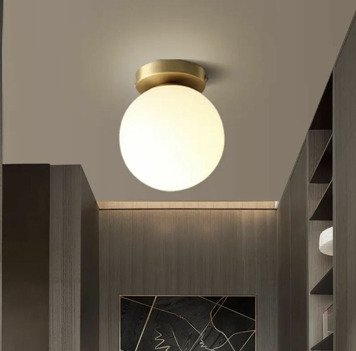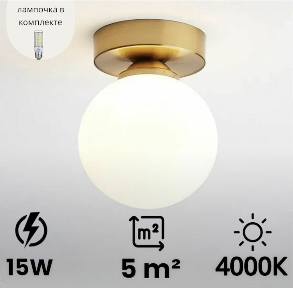 Настенно - потолочный светильник Шар с Золотым основанием для спальни, гостинной интересное: