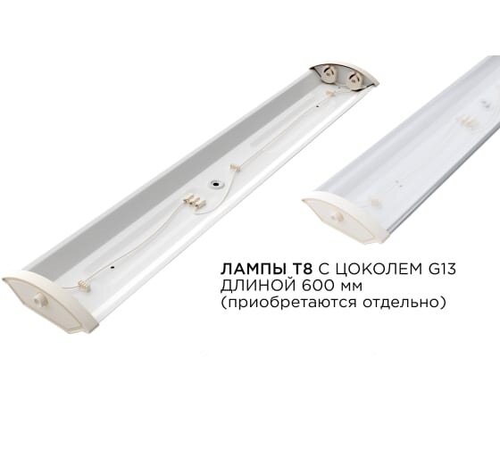 Светильник линейный под светод. лампыТ8 600мм, 632х118х40мм, IP40,220В/50Гц, металл/поликорб, белый Apeyron интересное: