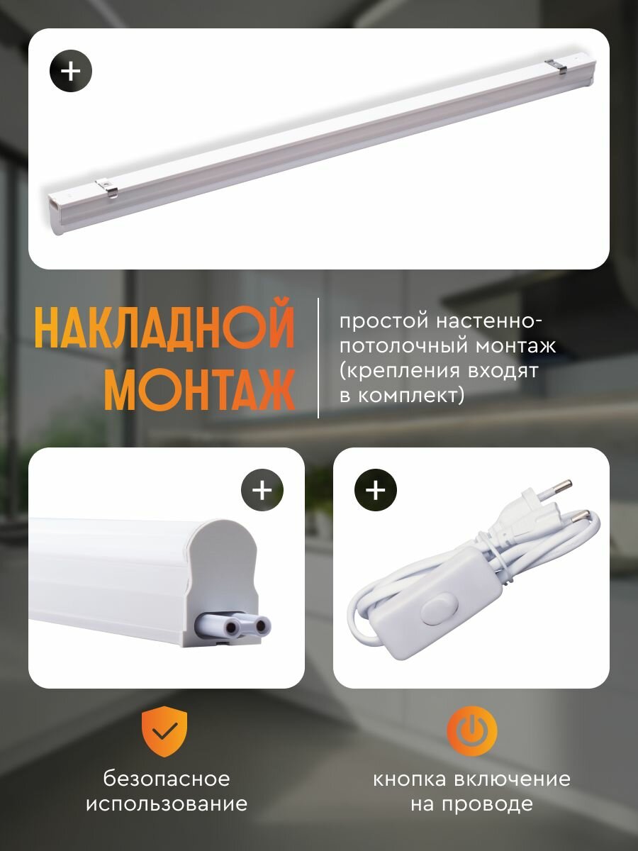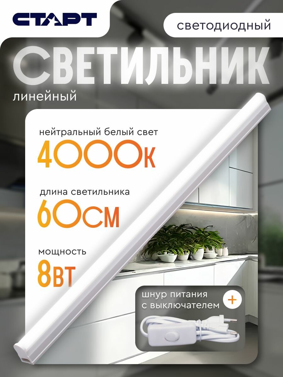 Светильник линейный светодиодный Т5 старт 8Вт 4000К 60 см для кухни интересное: