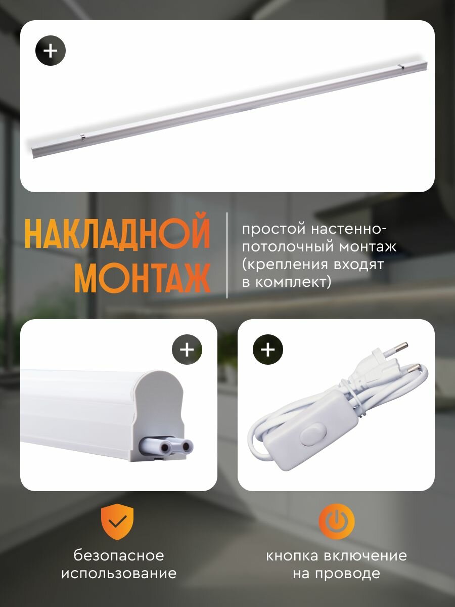 Светильник линейный светодиодный Т5 старт 16Вт 4000К 120 см для кухни интересное:
