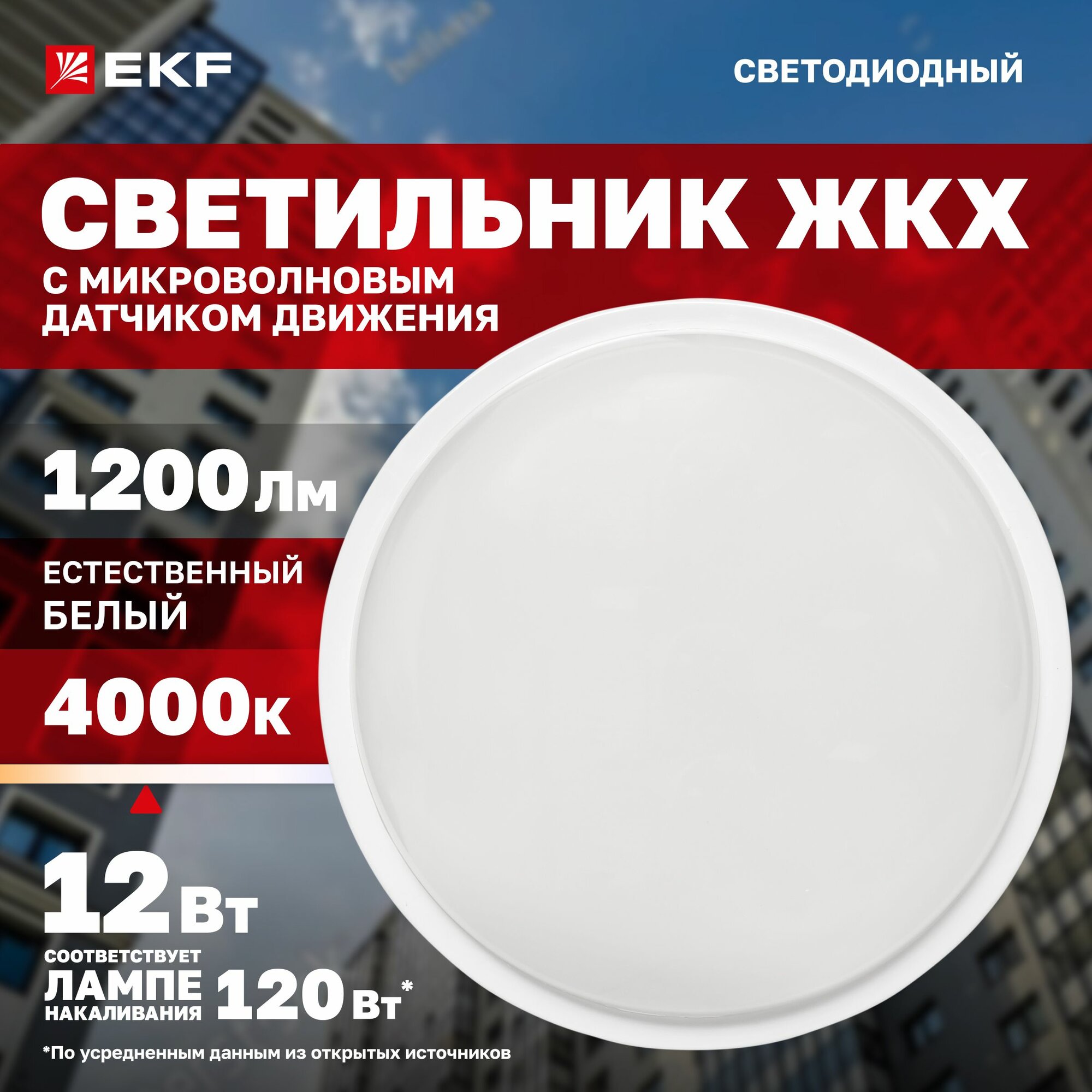 Светильник светодиодный ЖКХ EKF LUMA ДПО-2400 с микроволновым датчиком движения 12Вт 4000K IP65 интересное: