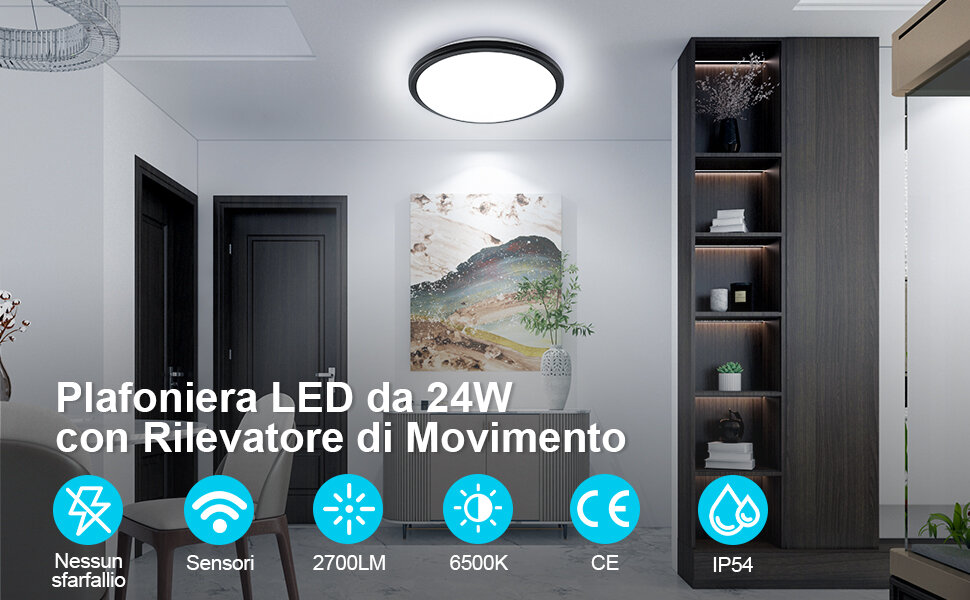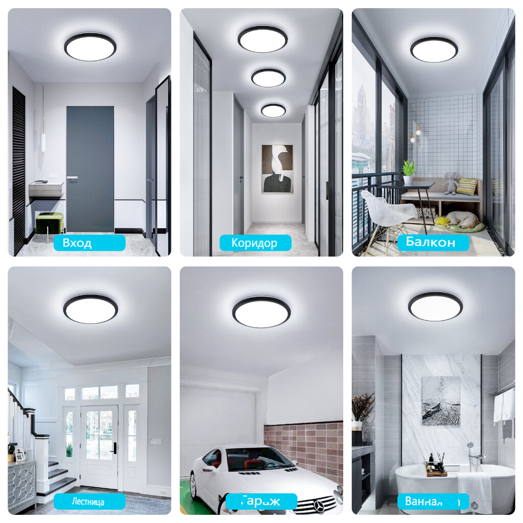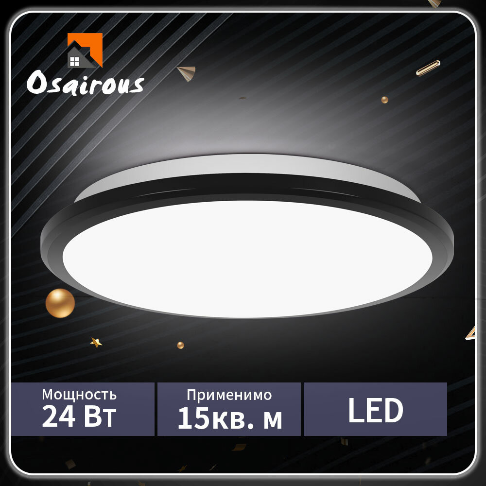 Потолочный светильник,Osairous,659257, Три противосветодиода, круглый, черный, радиолокационная индукция, 24 Вт интересное: