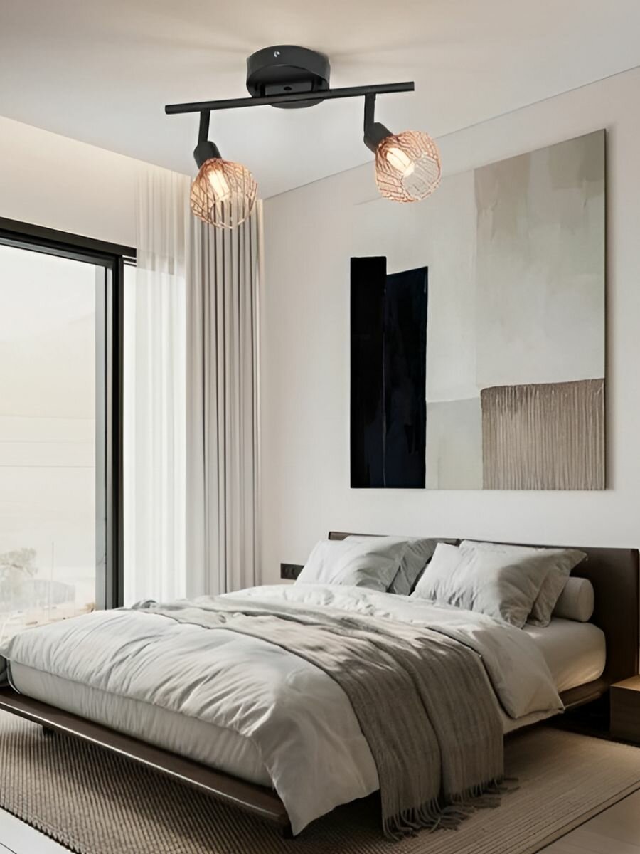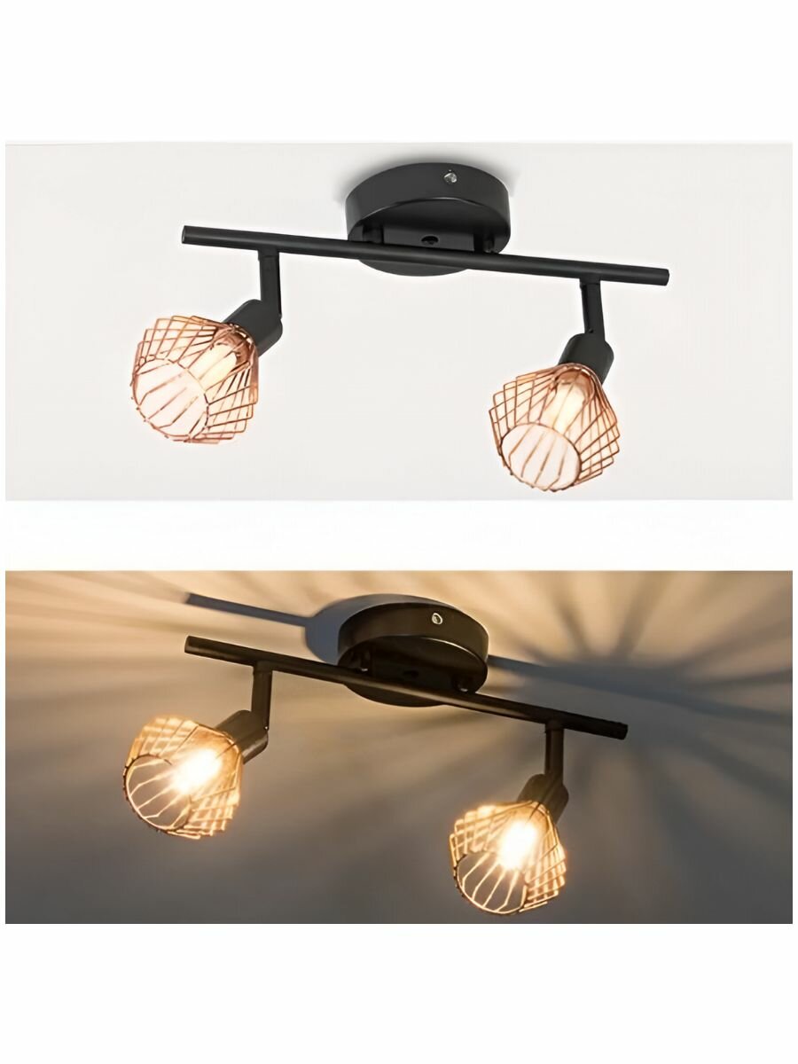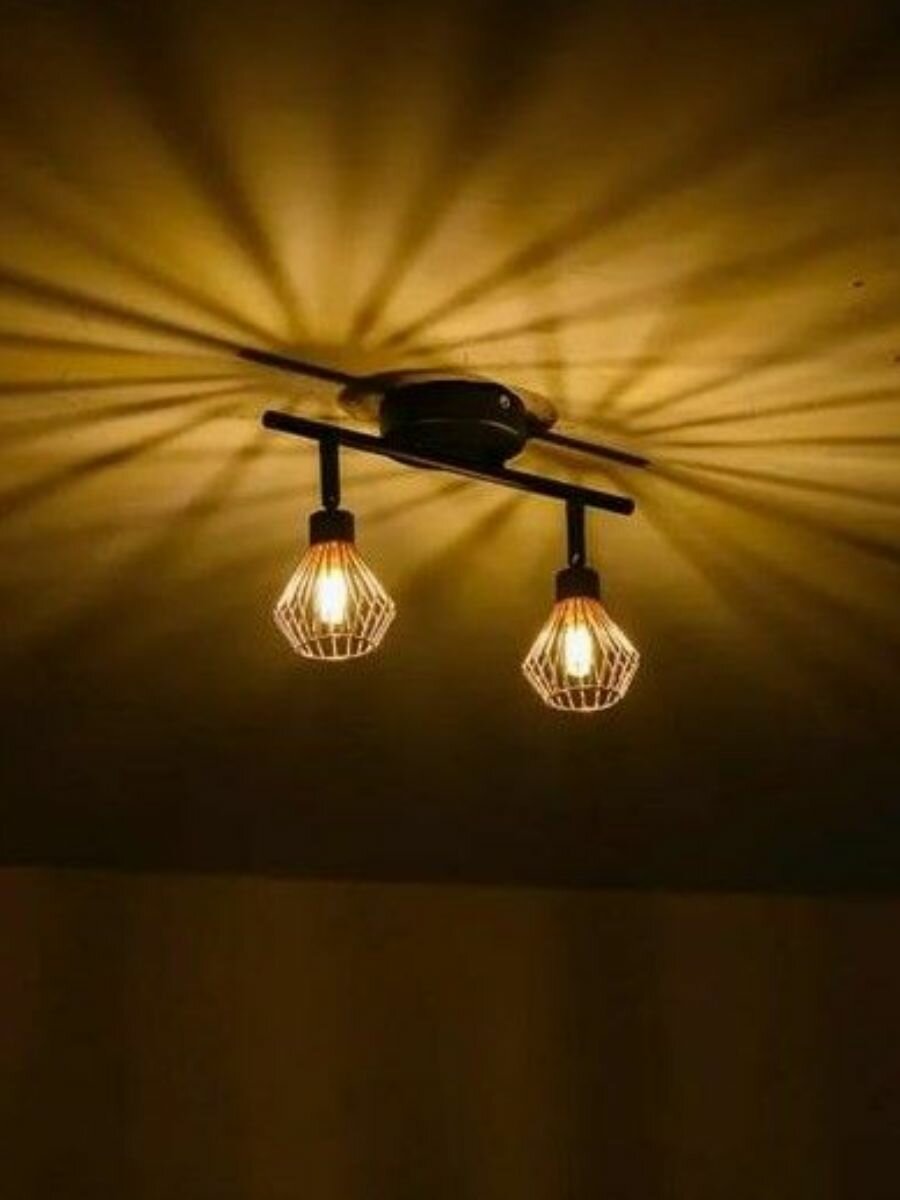 Настенно-потолочный светильник Проволочный 2 плафона Черн/Золото интересное: