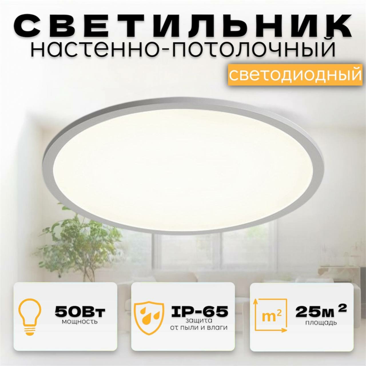 СохранитьСветильник потолочный светодиодный пластиковый мощный и яркий 50Вт, 6000К, 37см, белый интересное: