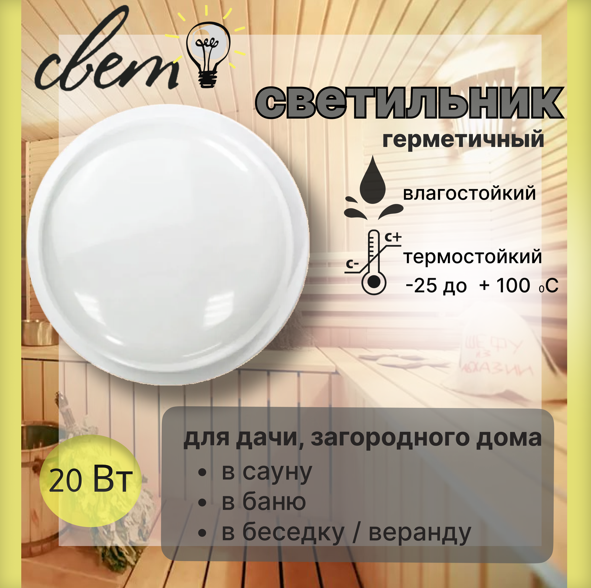 Купить Светильник, 20Вт в баню, сауну, на дачу, загородный дом, светодиодный, герметичный