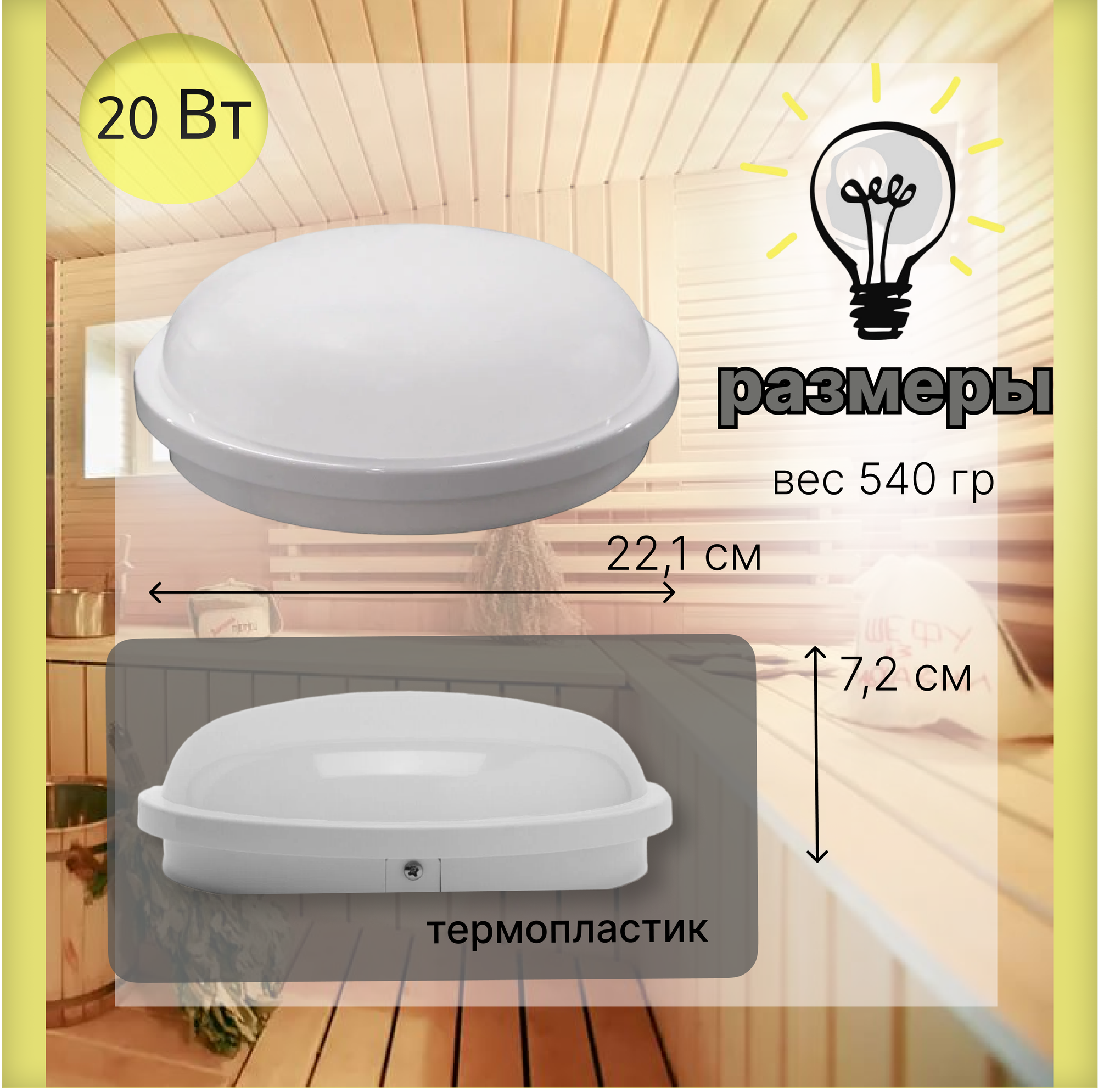 СохранитьСветильник, 20Вт в баню, сауну, на дачу, загородный дом, светодиодный, герметичный интересное: