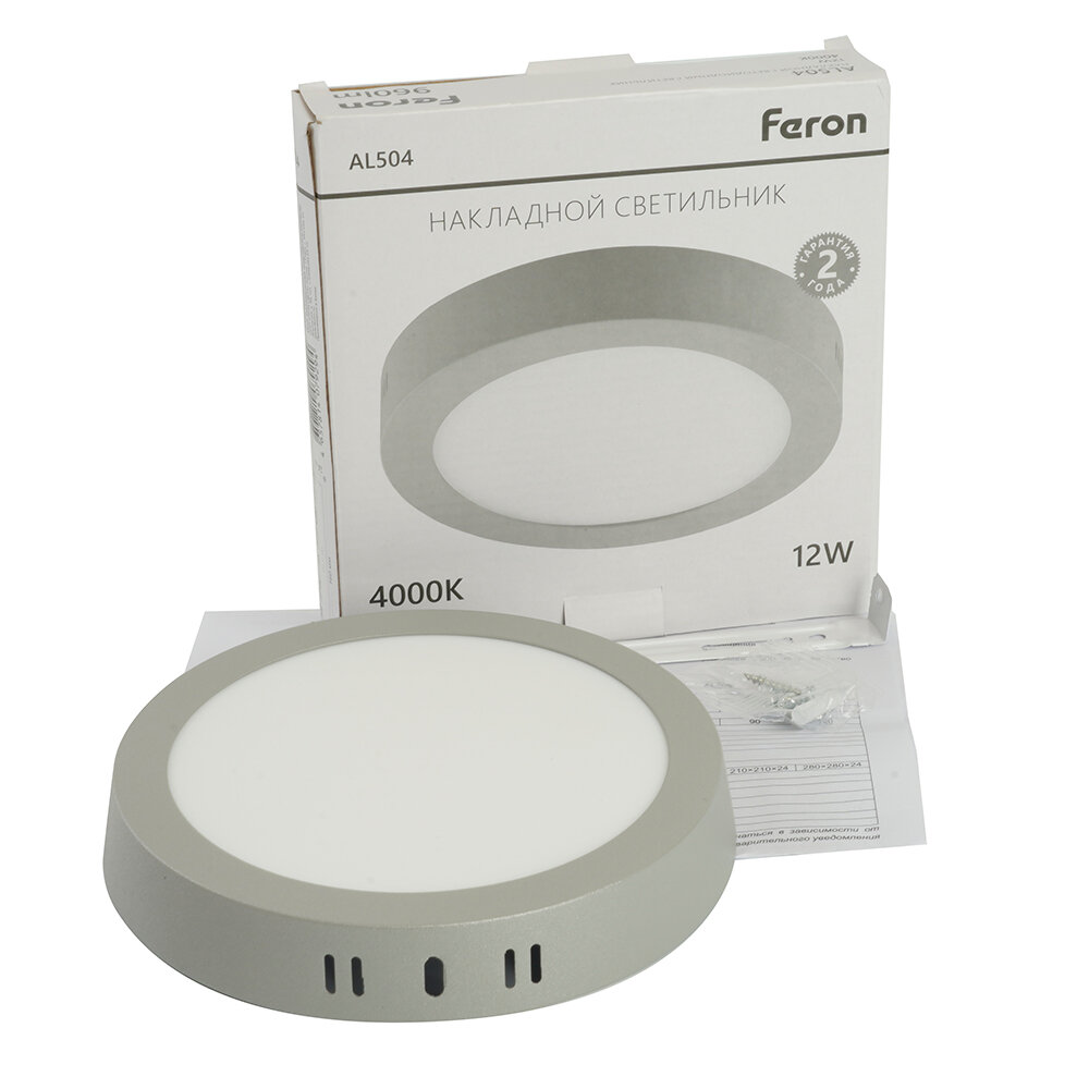 Светильник светодиодный Feron 12W, 960Lm, 4000К, AL504 с драйвером в комплекте, серый интересное: