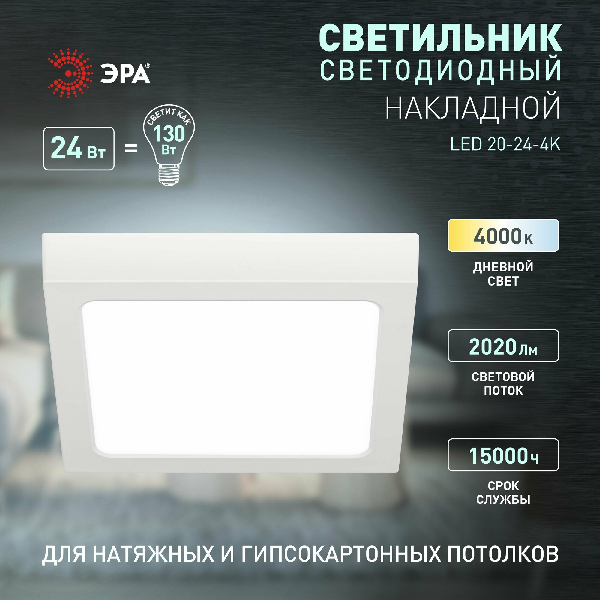Светильник потолочный накладной ЭРА LED 20-24-4K светодиодный декоративный, квадратный 24Вт 4000К интересное:
