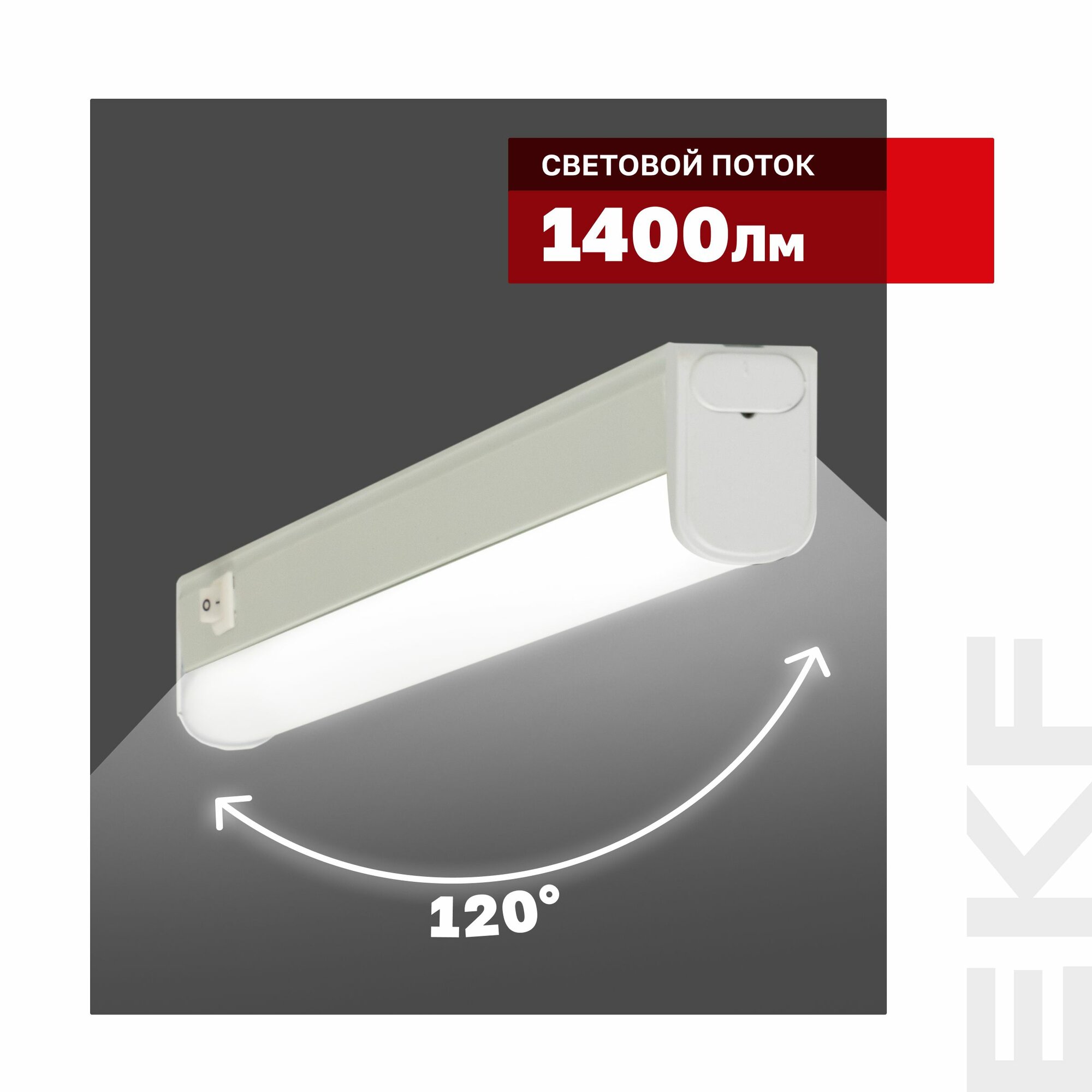 Купить Светильник светодиодный линейный с выключателем ДБОВ-7104 14 Вт 4000K IP20 EKF Basic 1400Лм, дневной нейтральный белый, эквивалентен лампе накаливания мощностью 140Вт*