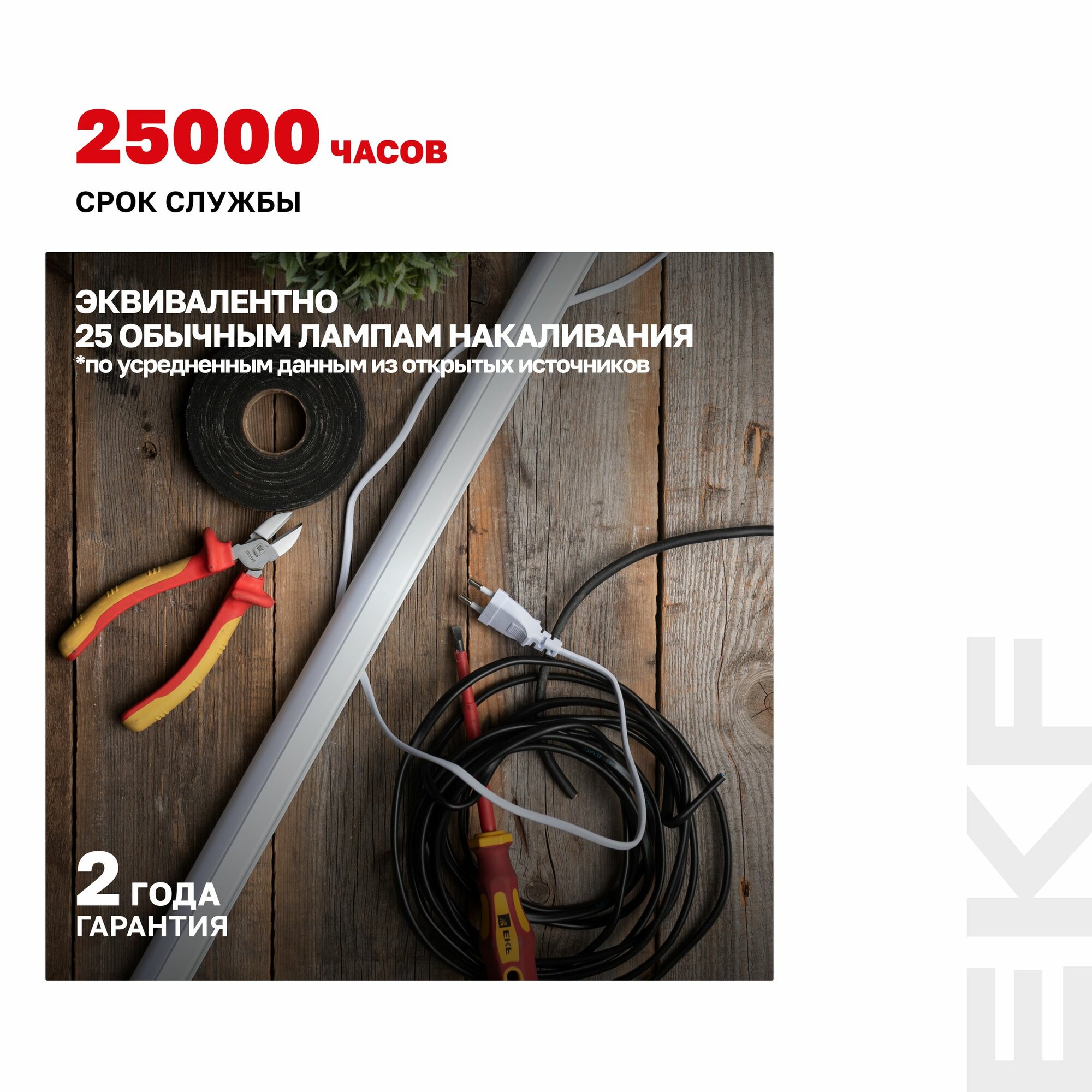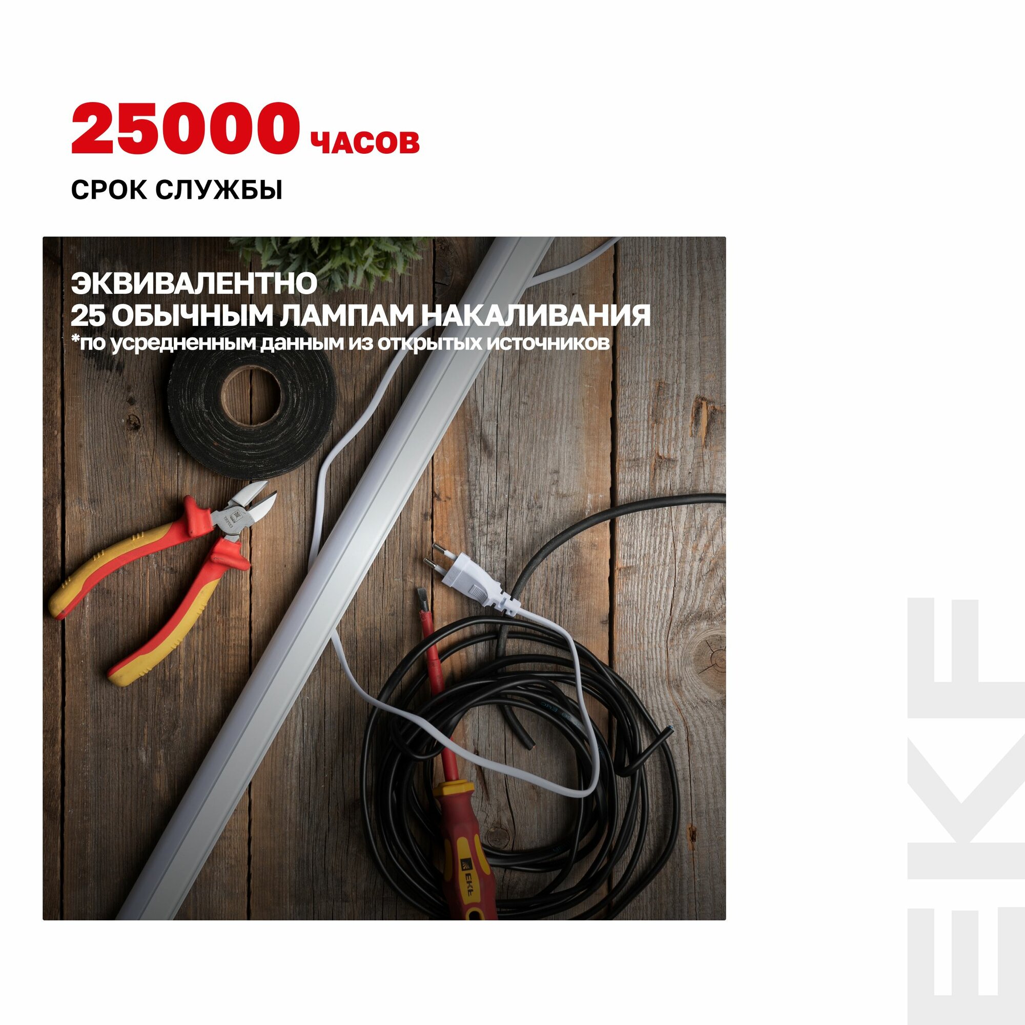 Светильник светодиодный линейный с выключателем ДБОВ-7103 10Вт 4000K IP20 EKF Basic 950Лм, дневной нейтральный белый, эквивалентен лампе накаливания мощностью 95Вт*