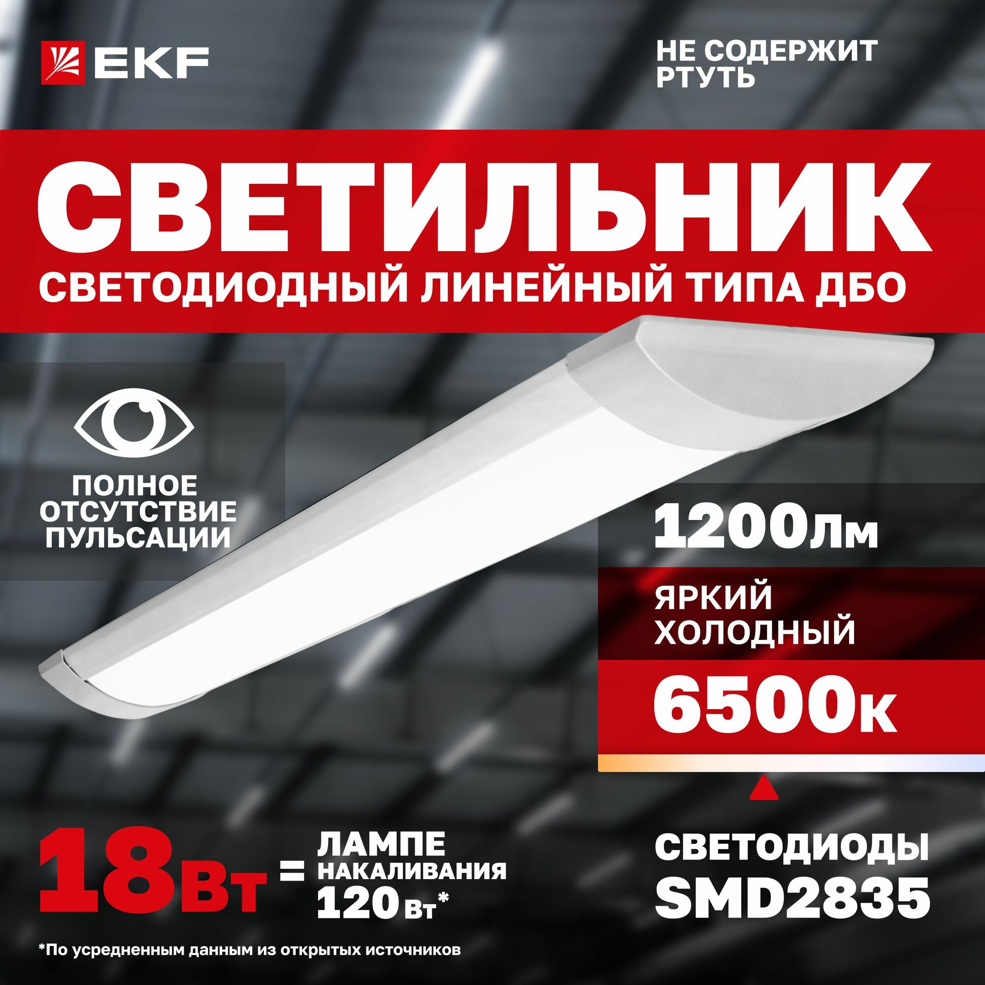 СохранитьСветильник светодиодный линейный ДБО-6102 18Вт 1200Лм 6500K (холодный белый) IP20 EKF Basic интересное:
