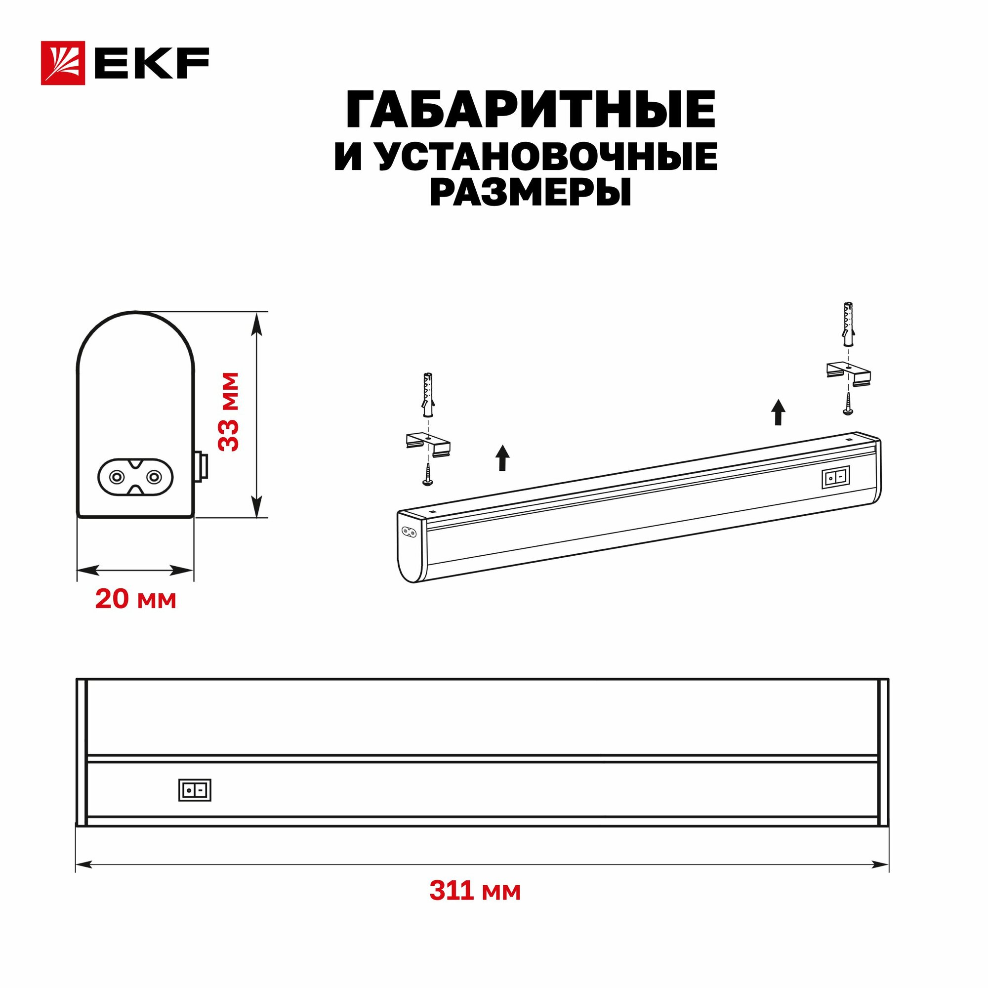 СохранитьСветильник светодиодный линейный с выключателем ДБОВ-7101 4 Вт 4000K IP20 EKF Basic 400Лм, дневной нейтральный белый, эквивалентен лампе накаливания мощностью 40Вт* интересное: