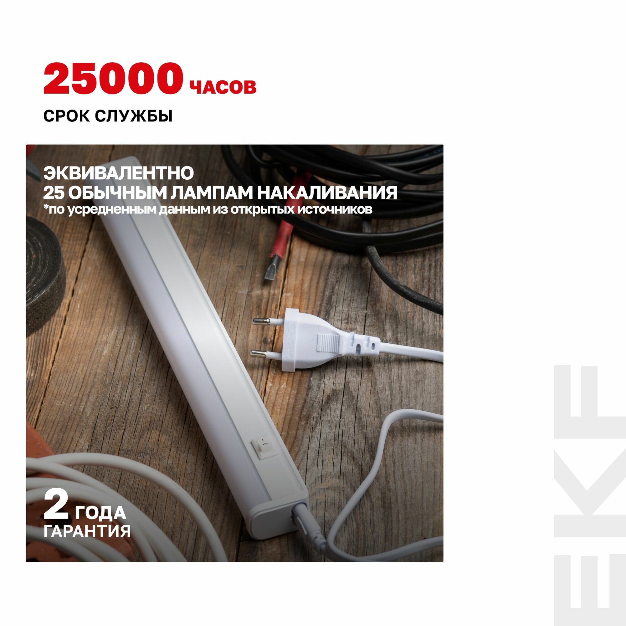 Светильник светодиодный линейный с выключателем ДБОВ-7103 10Вт 4000K IP20 EKF Basic 950Лм, дневной нейтральный белый, эквивалентен лампе накаливания мощностью 95Вт*