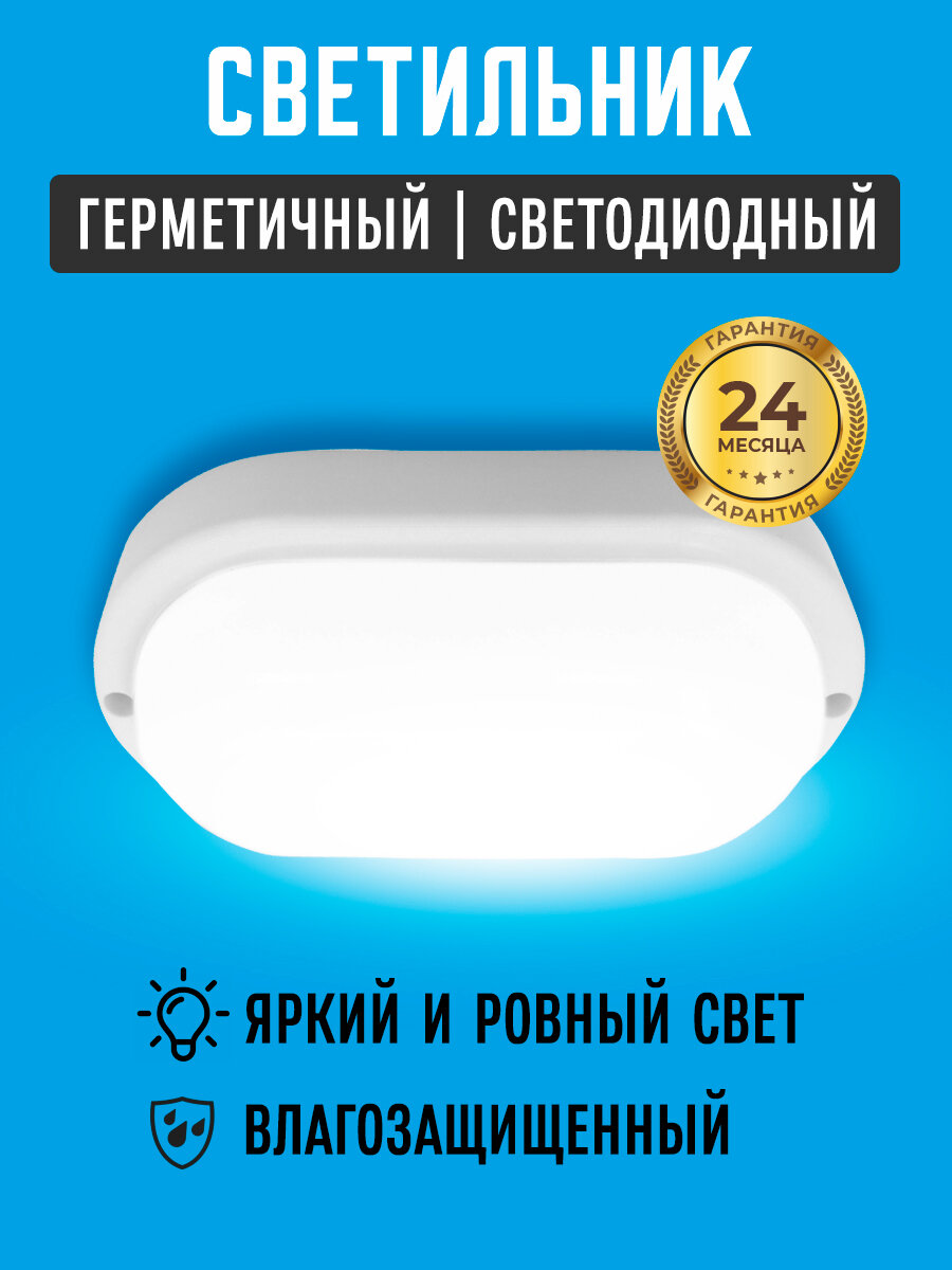 Светильник светодиодный овальный 8вт; герметичный и термостойкий, для бытовых и промышленных помещений; уличный влагостойкий настенный; для подъездов, для бассейна и для дачи LEEK
