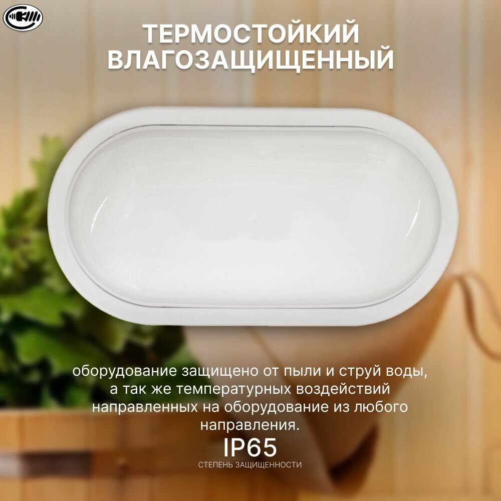 Светильник настенно-потолочный светодиодный IP 65, 15Вт термостойкий влагозащищенный для бани и сауны, ванной, уличный, герметичный, овал