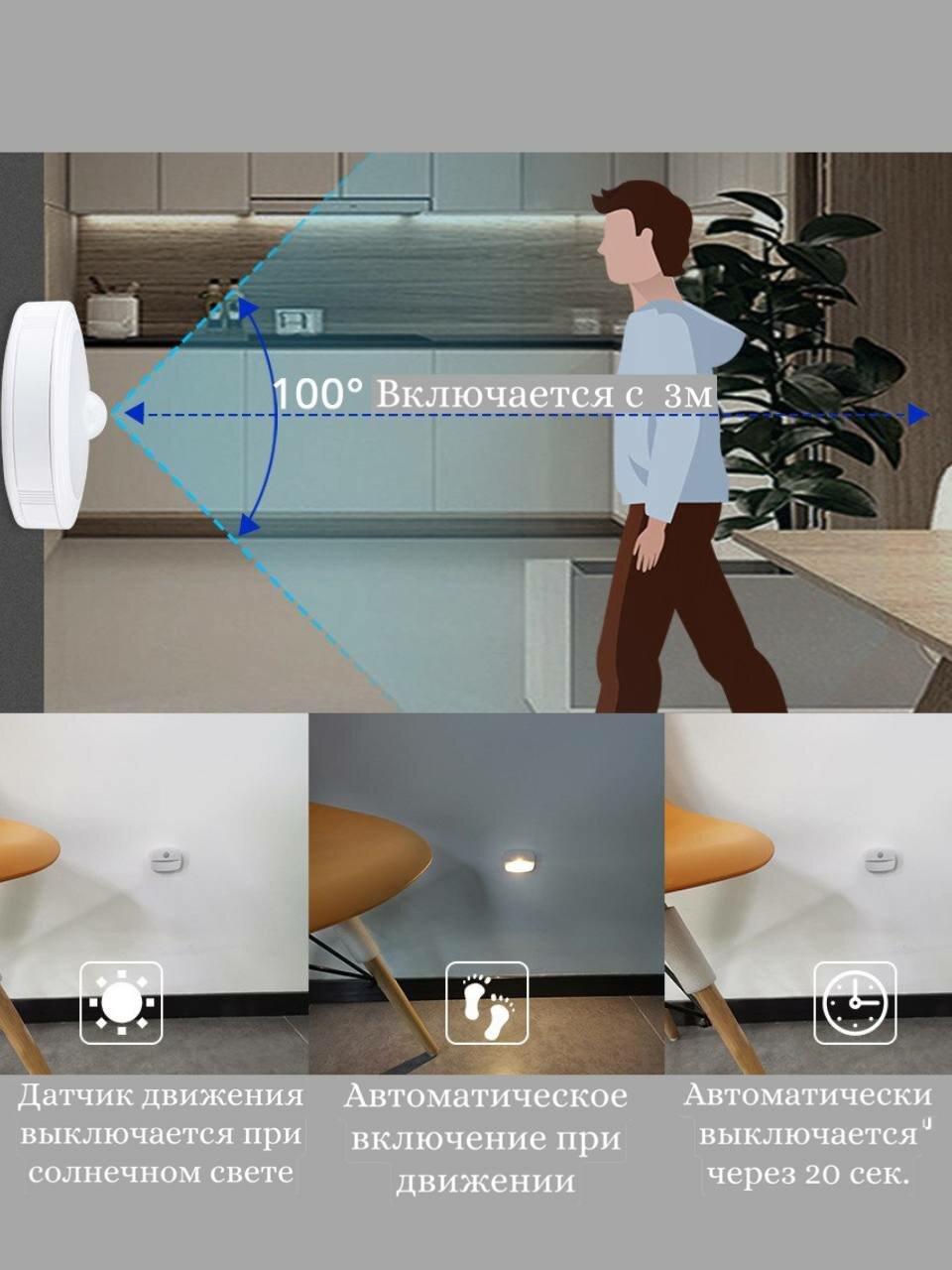 Светильник от батареек светодиодный настенный 2 шт. для спальни, лестницы, теплый свет 0,5 w (батареек в комплекте нет) интересное: