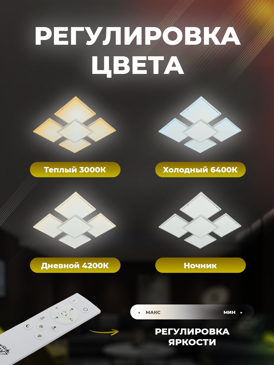 Светильник светодиодный Brilliant light LI8018-450, пульт ДУ 120W, 450*450*45, белый, хром интересное: