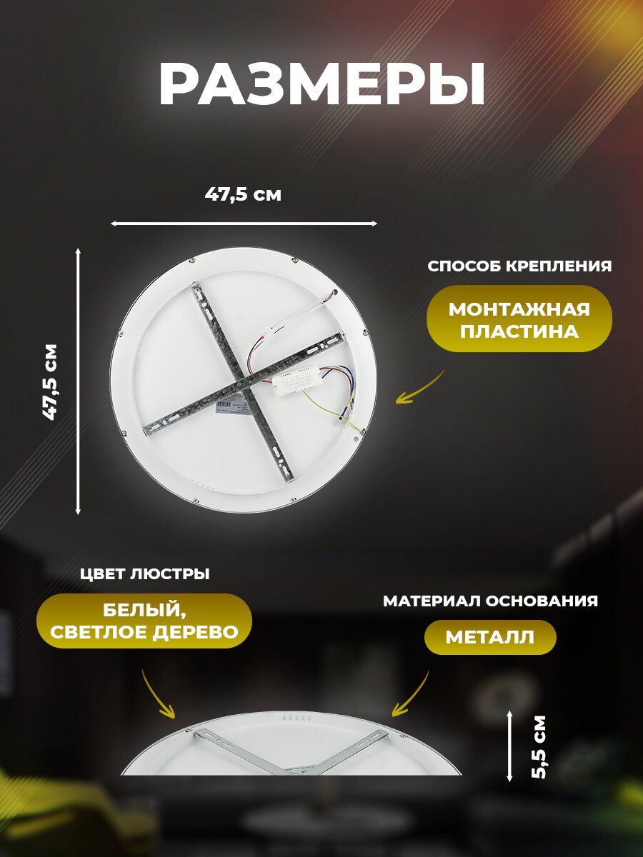 Светильник светодиодный Brilliant light LI8397-470, пульт ДУ 110W, 475*55, белый, дерево интересное: