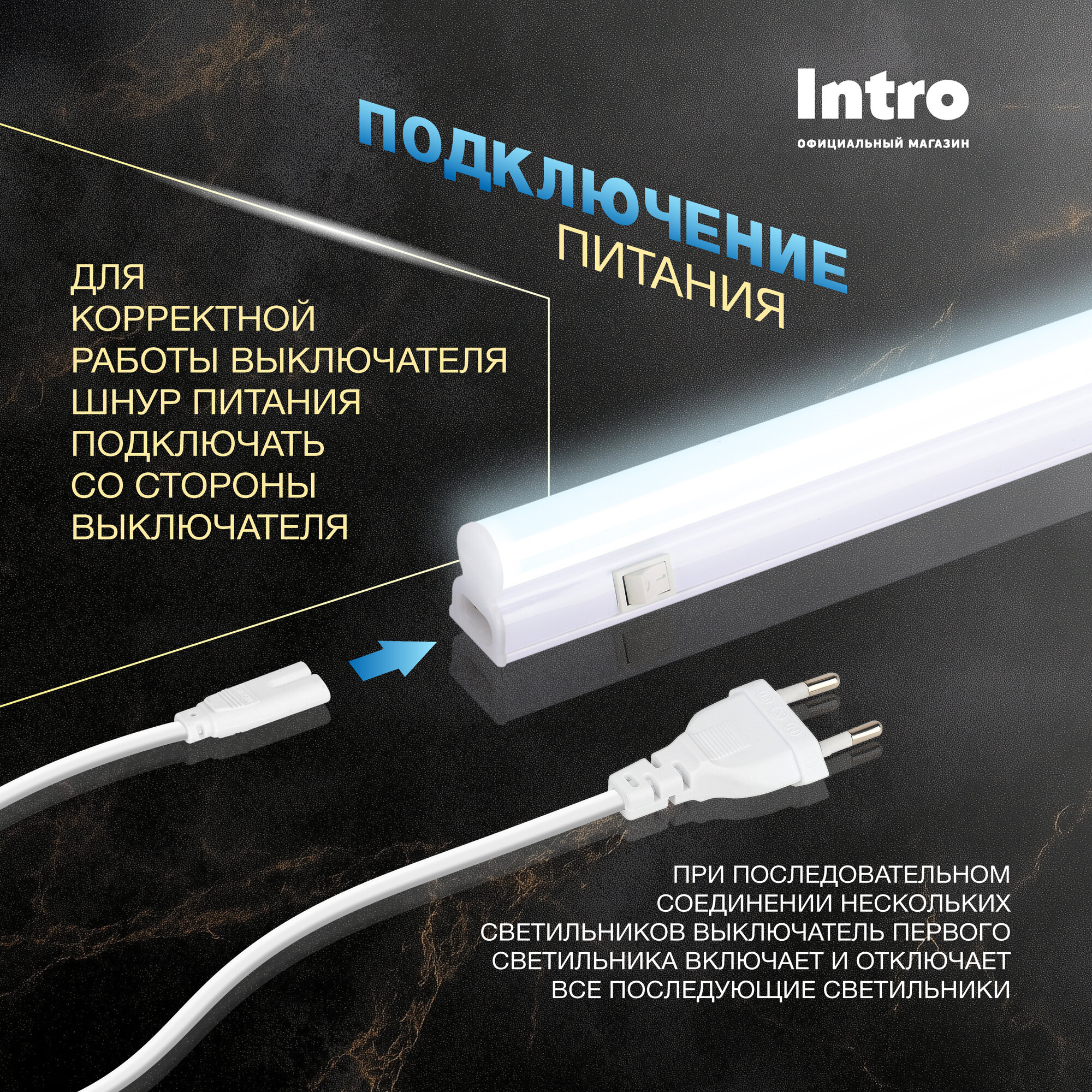 Светильник светодиодный линейный 8Вт 6500K 310мм с выключателем Intro интересное: