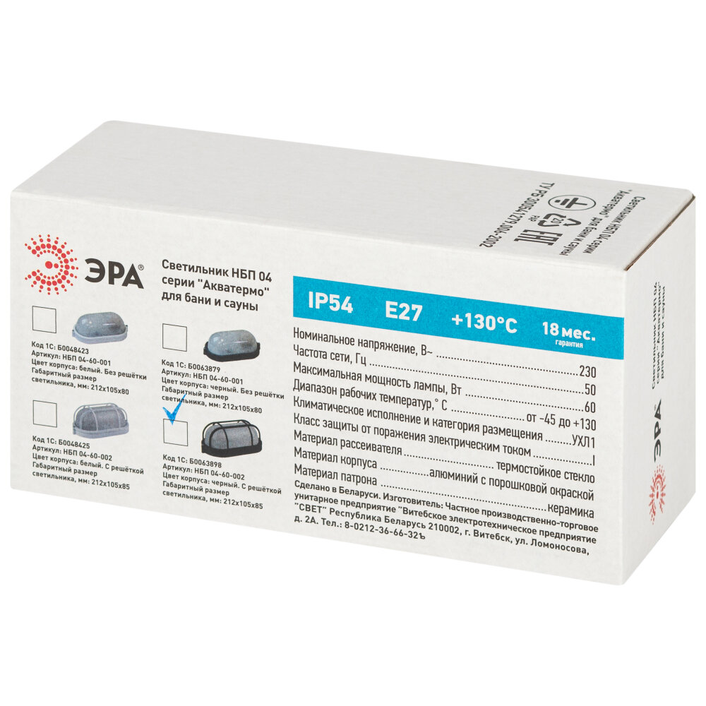 Купить Светильник для бани и сауны ванной душа ЭРА НБП 04-60-002 Акватермо Е27 60Вт IP54 уличный термостойкий герметичный овальный