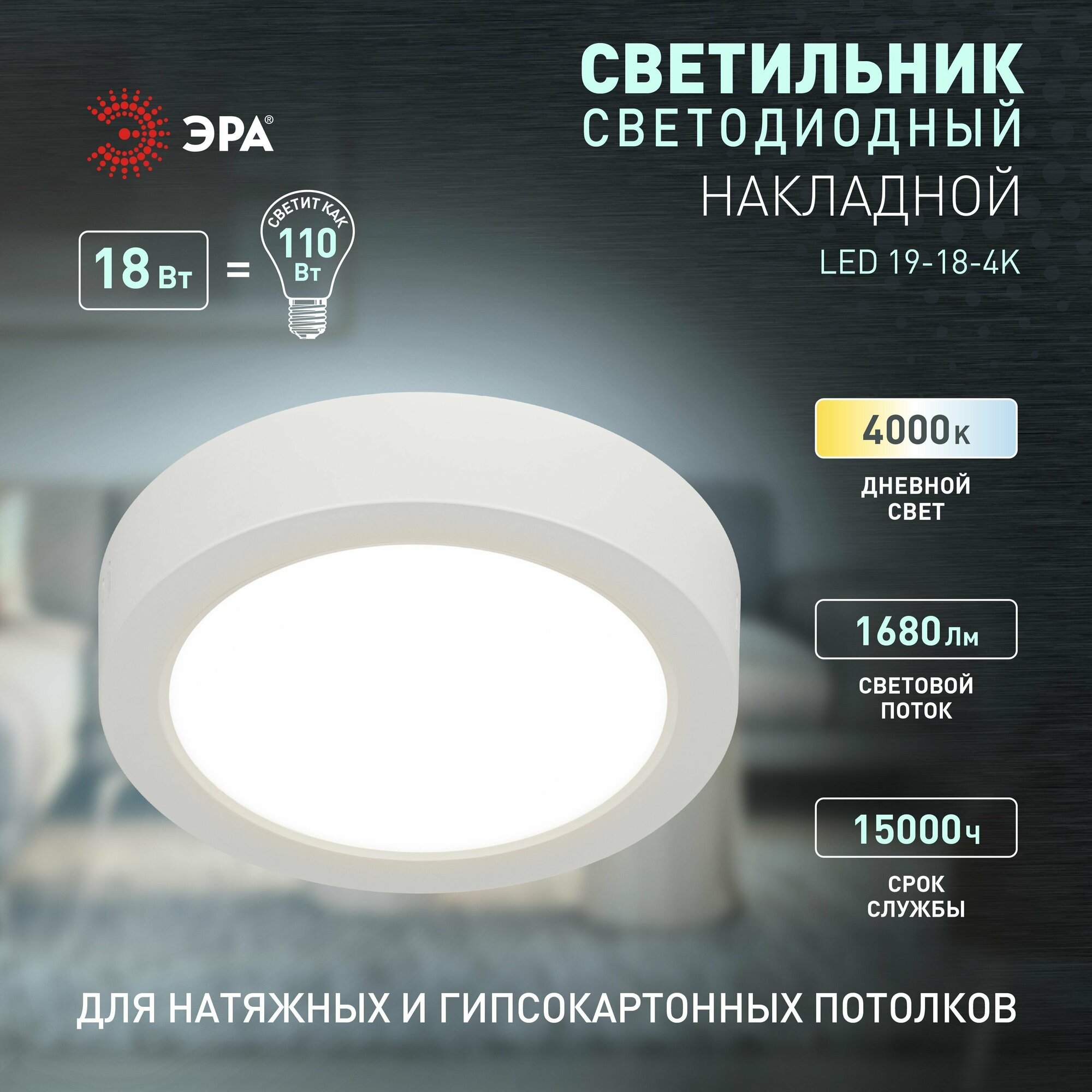 Светильник светодиодный ЭРА LED 19-18-4K накладной круглый 18Вт 4000К интересное: