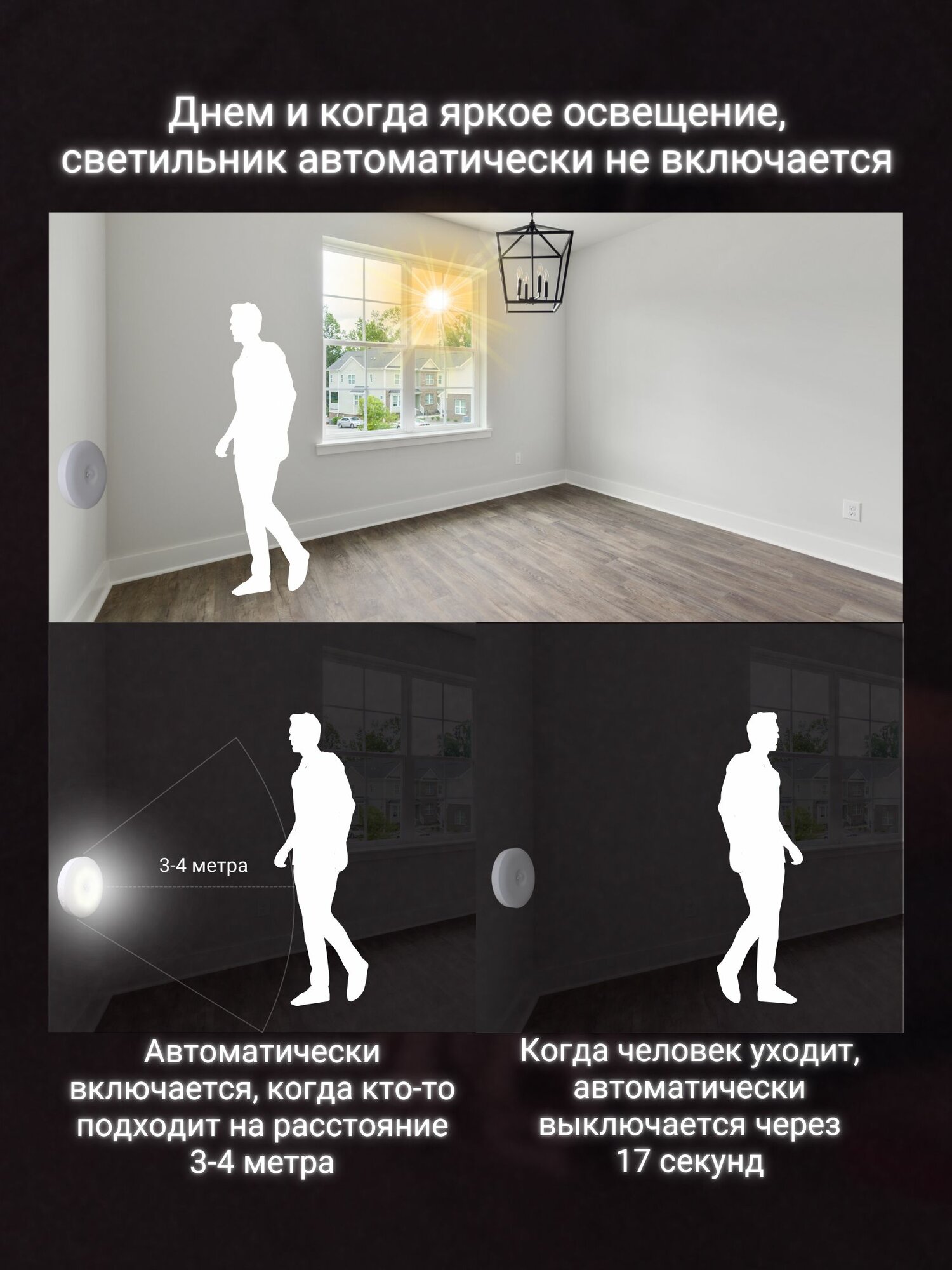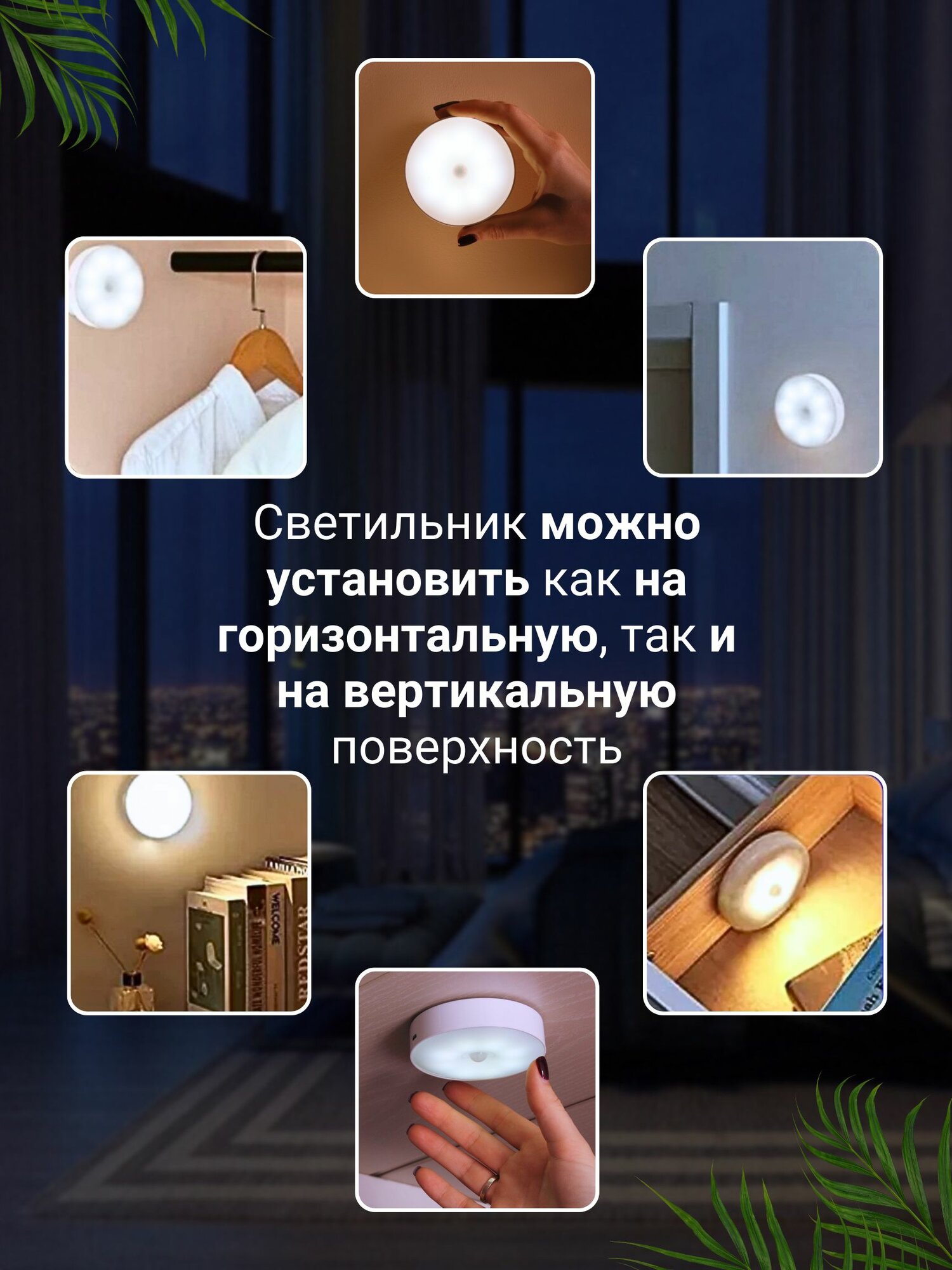 Беспроводной светодиодный светильник с датчиком движения на магнитном креплении. 2 режима освещения 5 шт интересное: