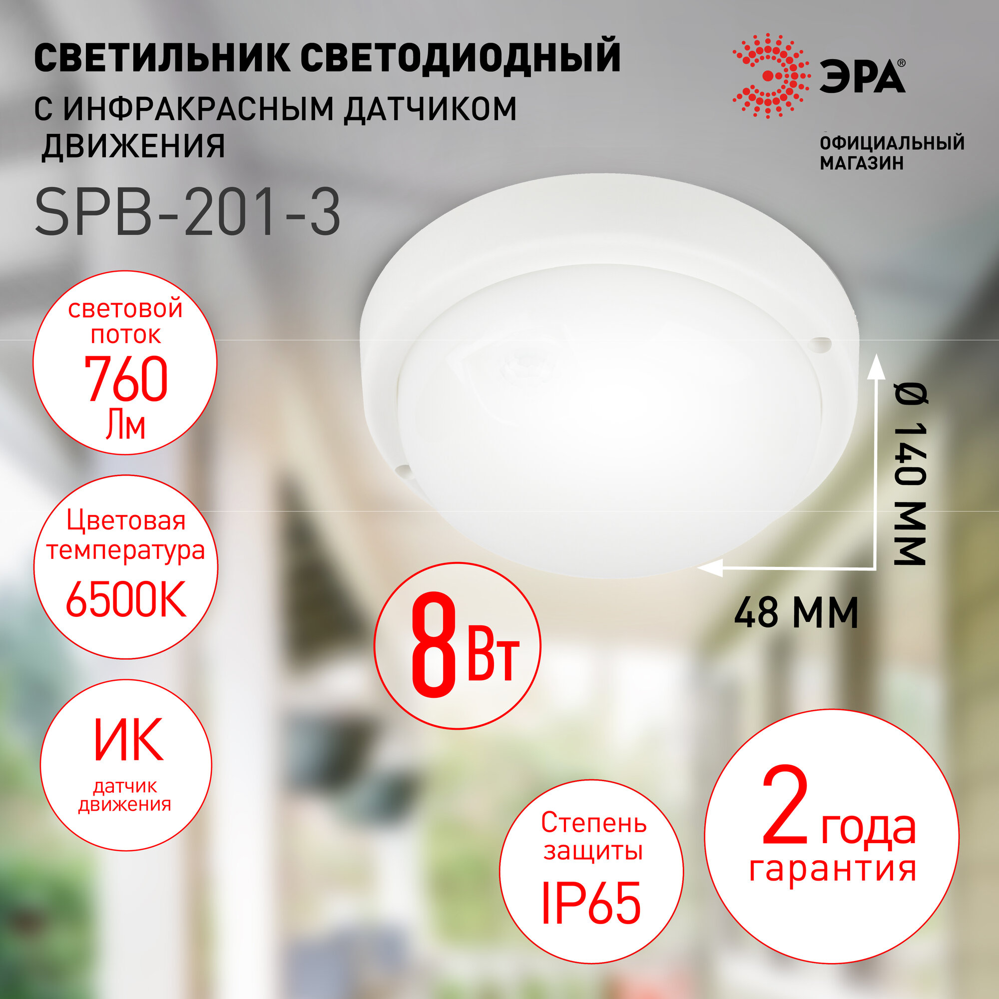 Светильник ЖКХ светодиодный ЭРА SPB-201-3-65K-008 8Вт 6500K 760Лм IP65 с ИК датчиком движения интересное: