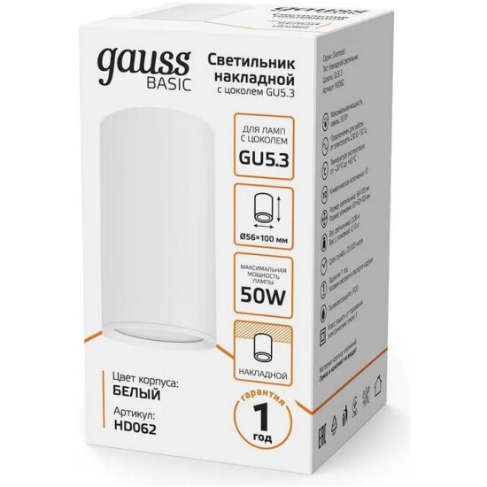 Накладной светильник Gauss Basic, накладной, под лампу GU5.3, белый 1/20/60 интересное: