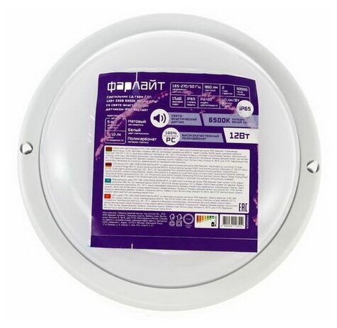 Светильник сд герм СПП 12Вт 230В 6500К 960Лм круг со свето-акустическим датчиком IP65 Фарлайт интересное: