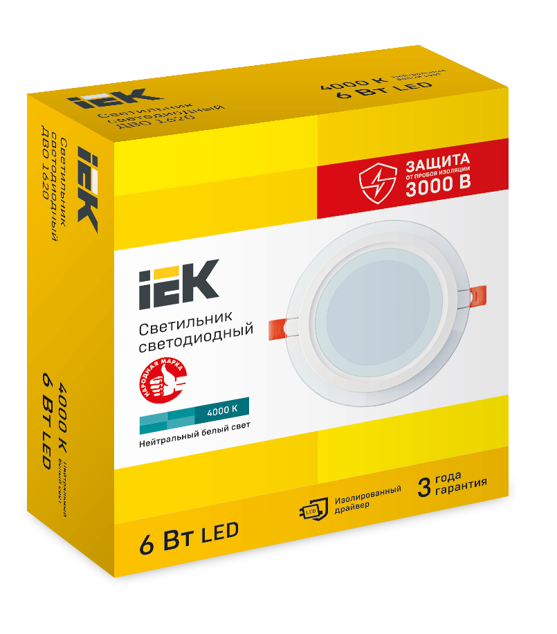 Светильник LED ДВО 1620 со стекл. круг 6Вт 4000К IP20, IEK LDVO01620064000K01 (1 шт.)