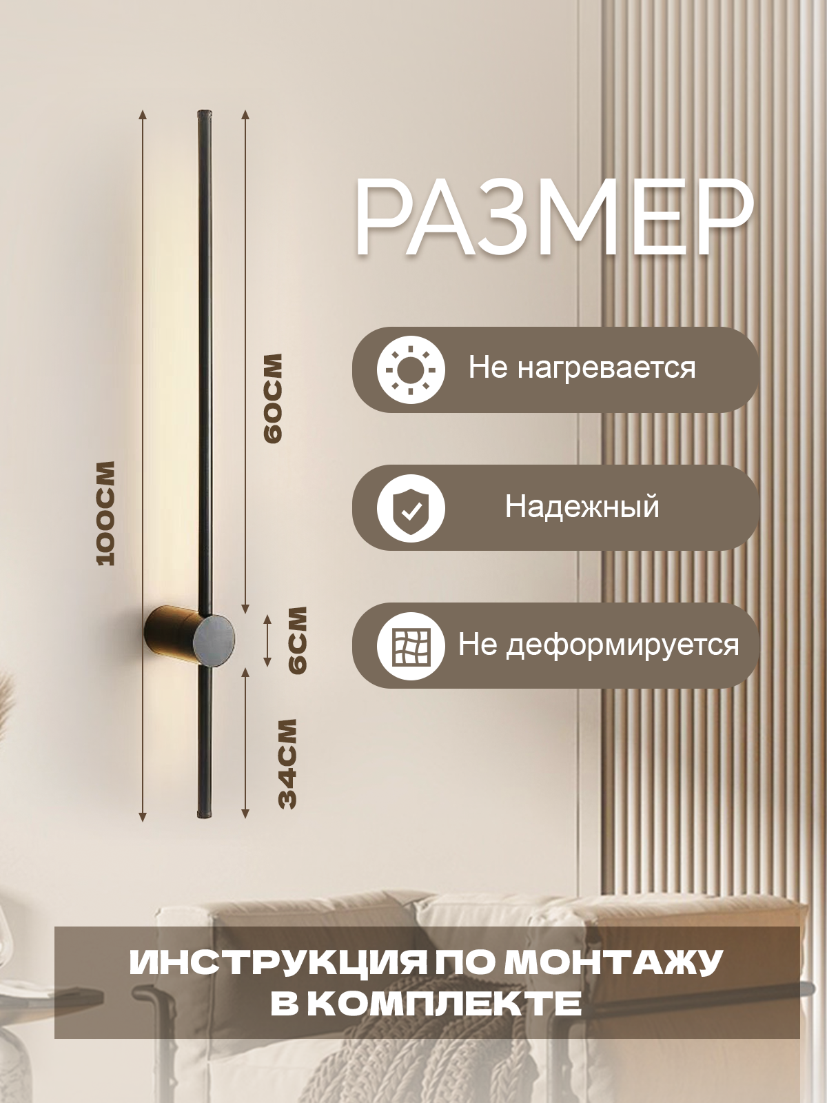 Настенный светильник, черный матовый, 80 см, светодиодный настенный светильник интересное: